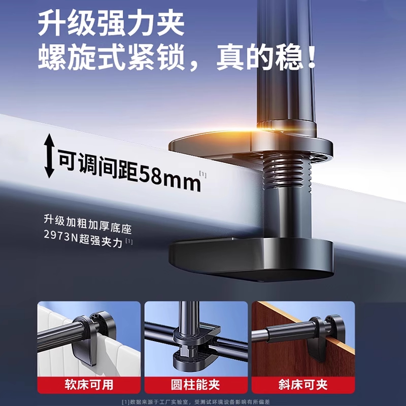 碳素钢手机架懒人支架床上躺着看电视床头手机ipad平板通用桌面拍摄拍照直播专用夹子多功能宿舍支撑架