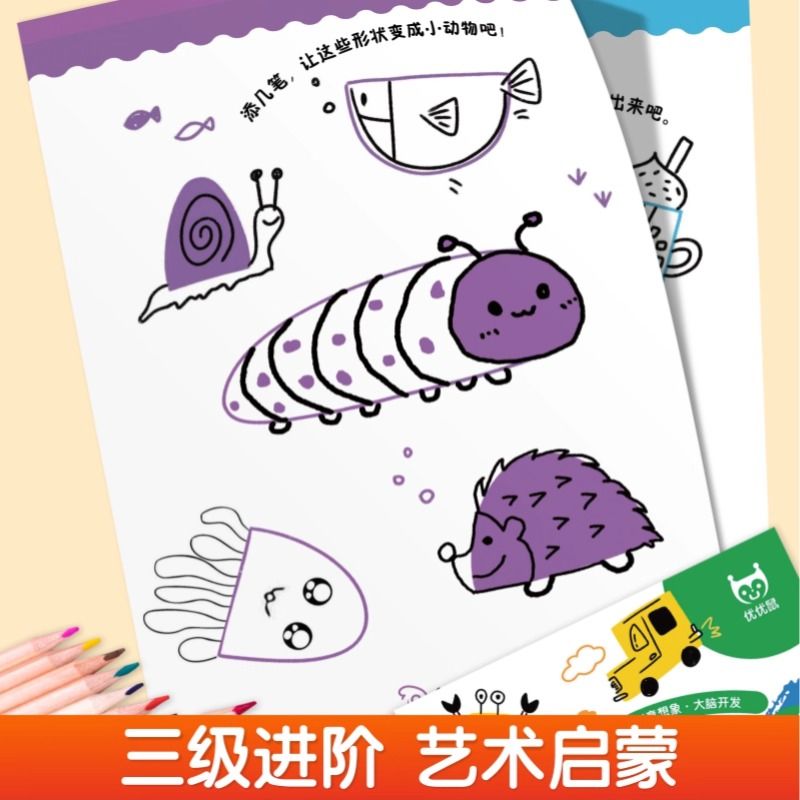 幼儿园涂色本零基础幼儿学画启蒙教材书适合2 6岁宝宝简笔画手绘涂色本幼儿美术绘画练习入门 6岁 创意涂鸦本 画画本3
