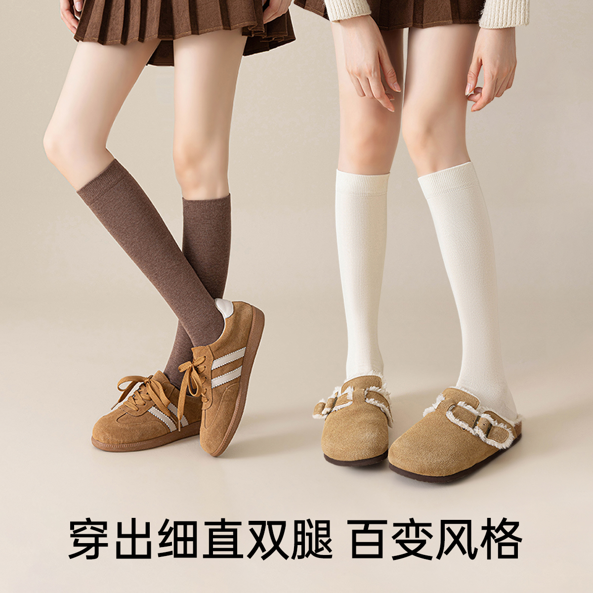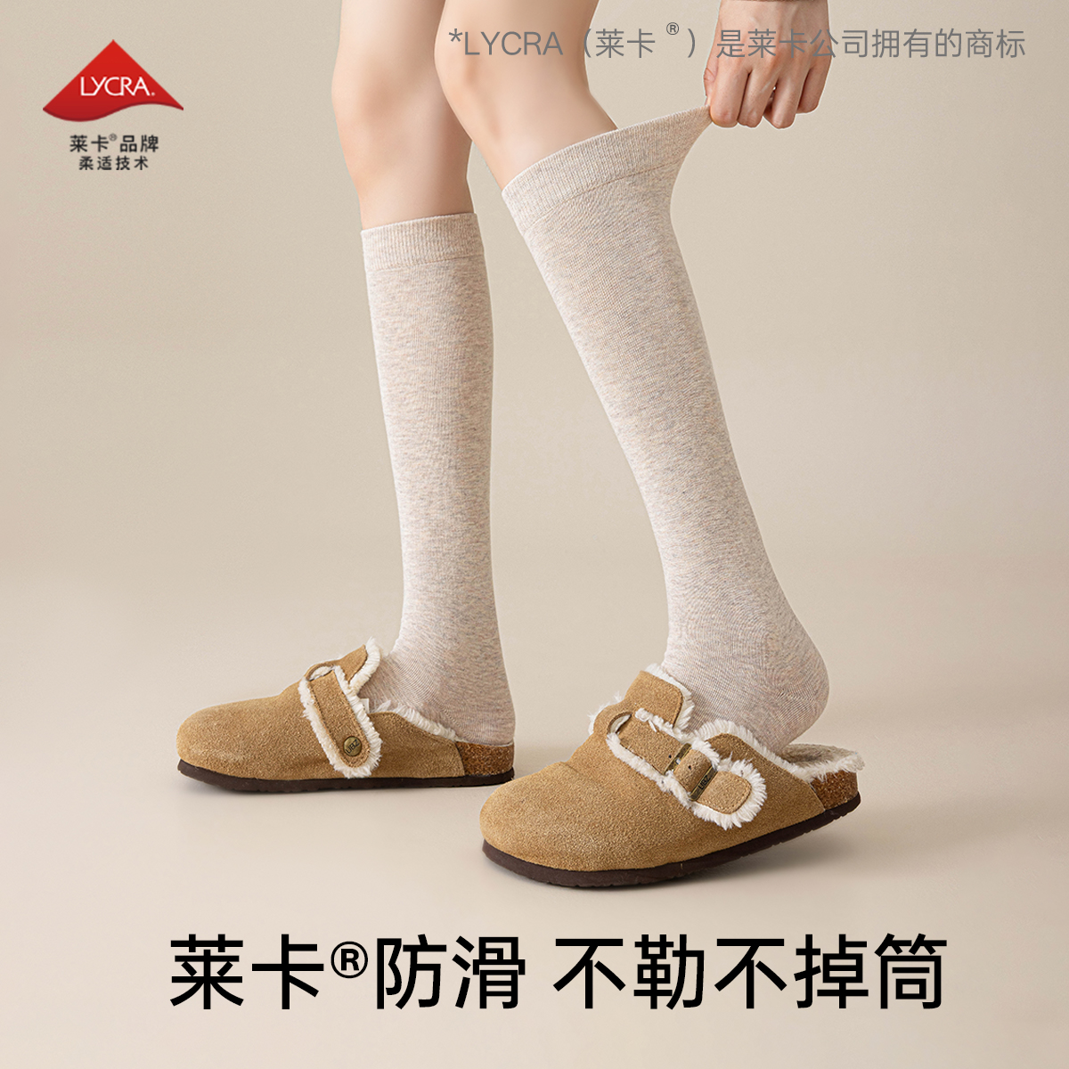 小腿袜子女纯棉长袜秋冬保暖中筒袜吸汗透气压力显瘦防滑长筒袜