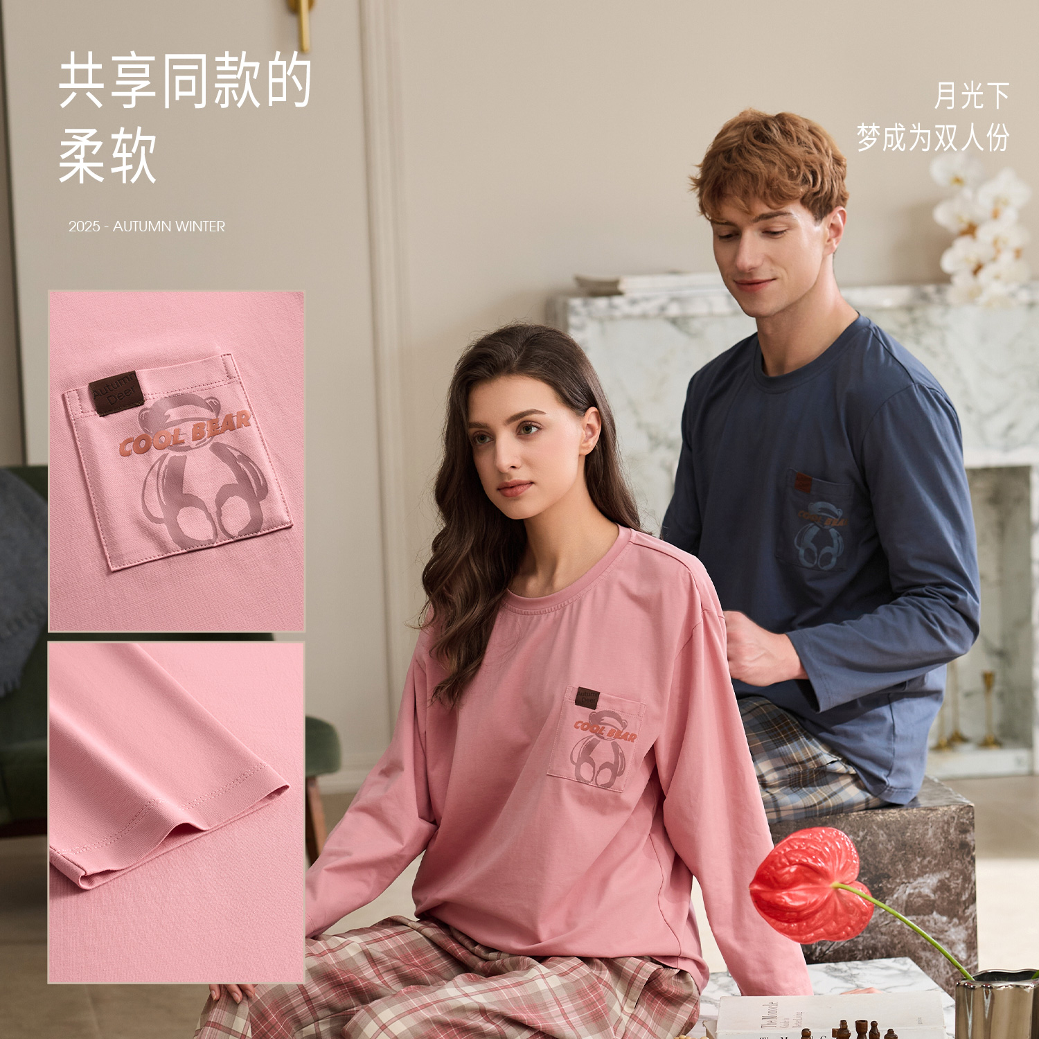 100纯棉舒适家居服男休闲可外穿 春秋季 新品 秋鹿睡衣女士2025新款