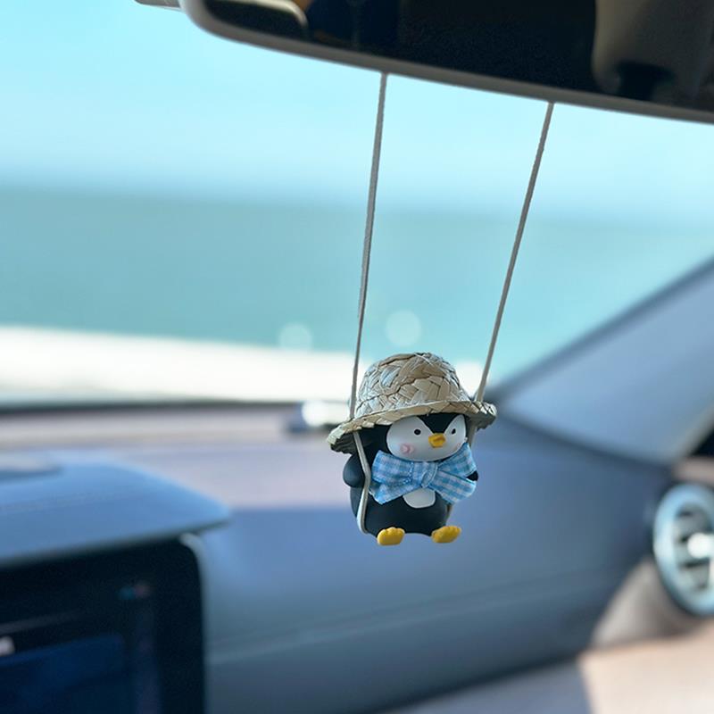 有趣企鹅秋千汽车挂件车内装 饰可爱车载香薰后视镜挂饰治愈系礼物
