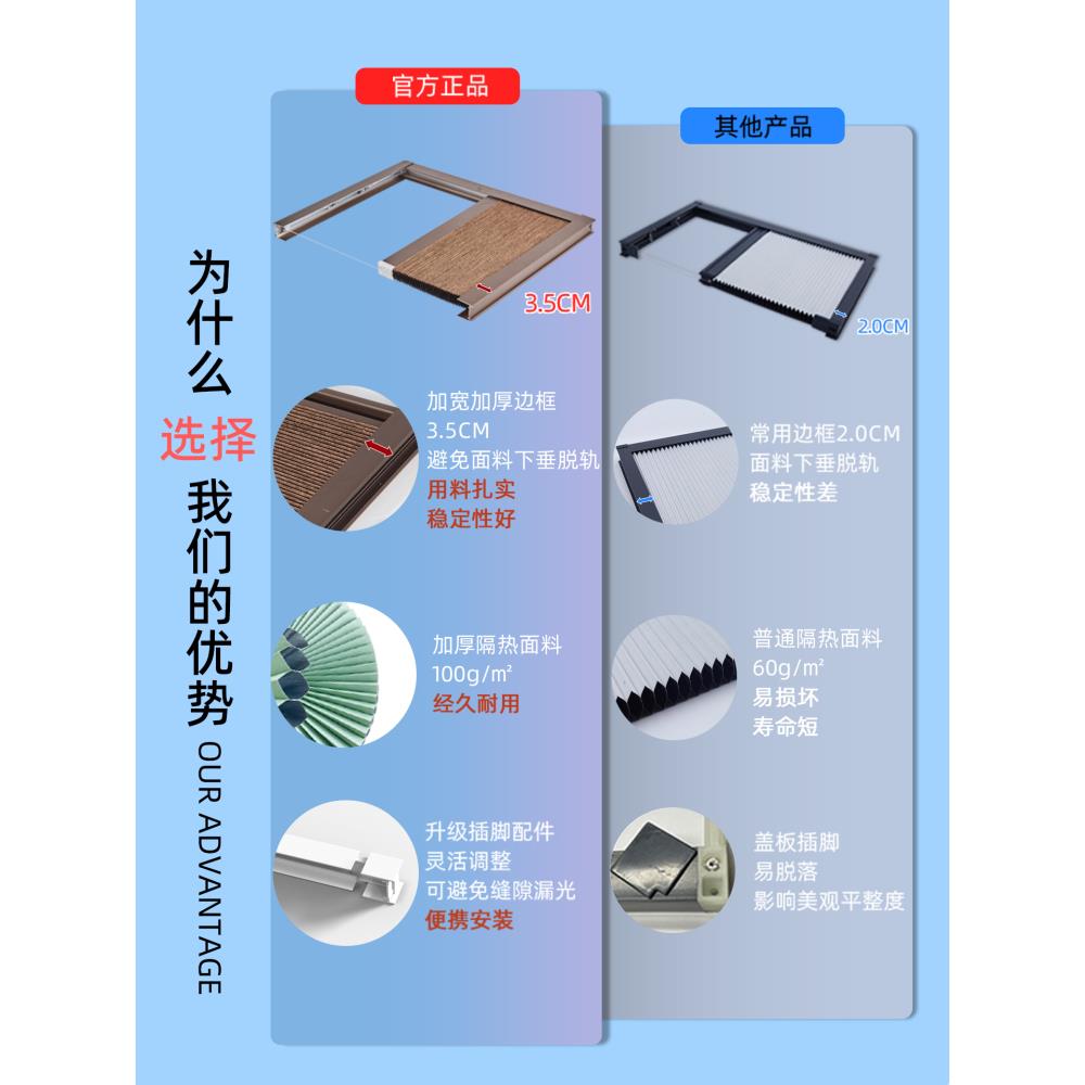 阳光房遮阳顶帘全遮光防晒手动蜂巢帘屋顶玻璃棚隔热电动伸缩天窗