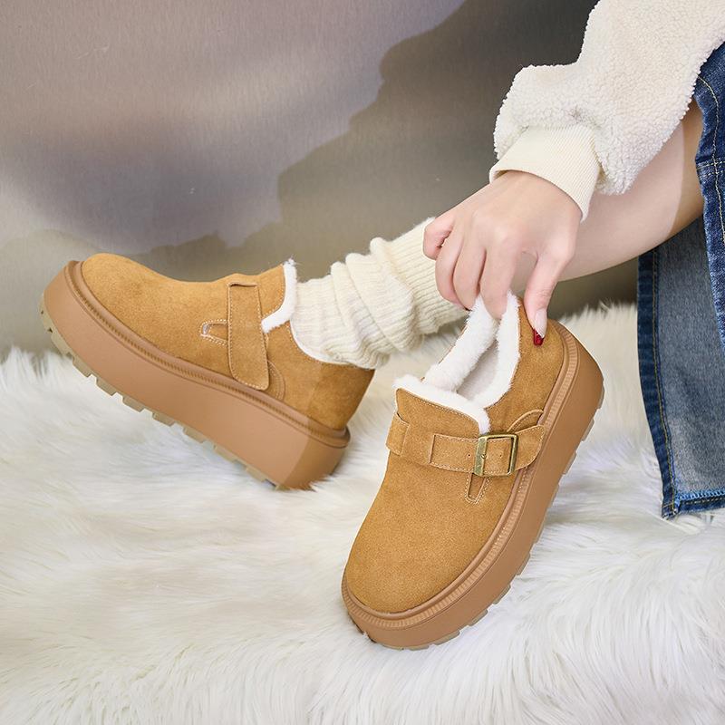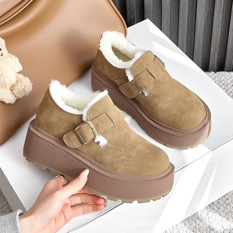 棉鞋 厚底加绒豆豆鞋 真皮秋冬乐福鞋 女2024新款 保暖雪地靴 博肯鞋