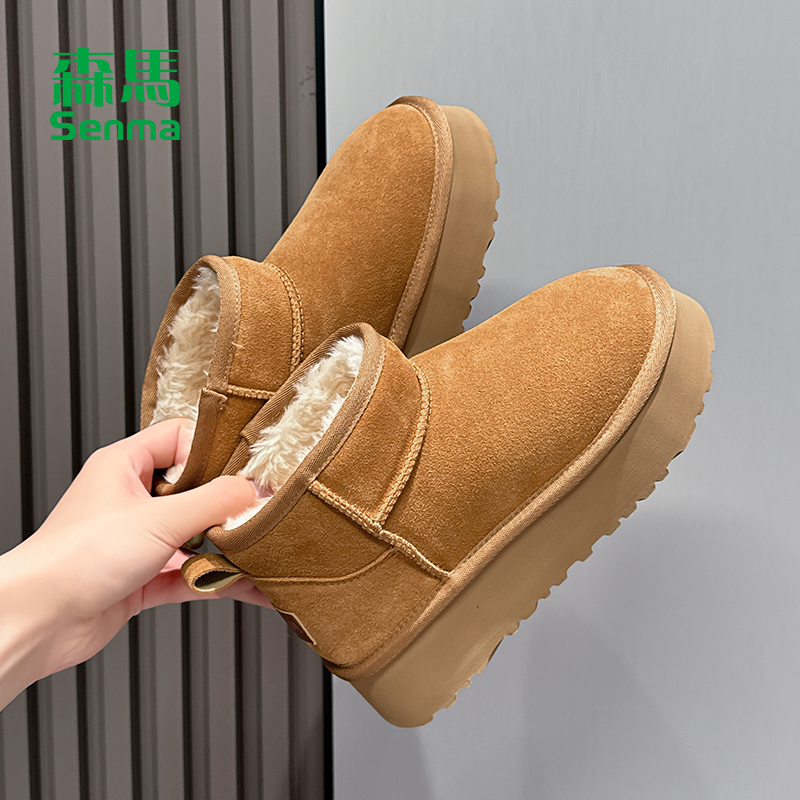 女加绒加厚短筒棉靴子女 东北大棉鞋 森马厚底雪地靴女2025冬季 新款
