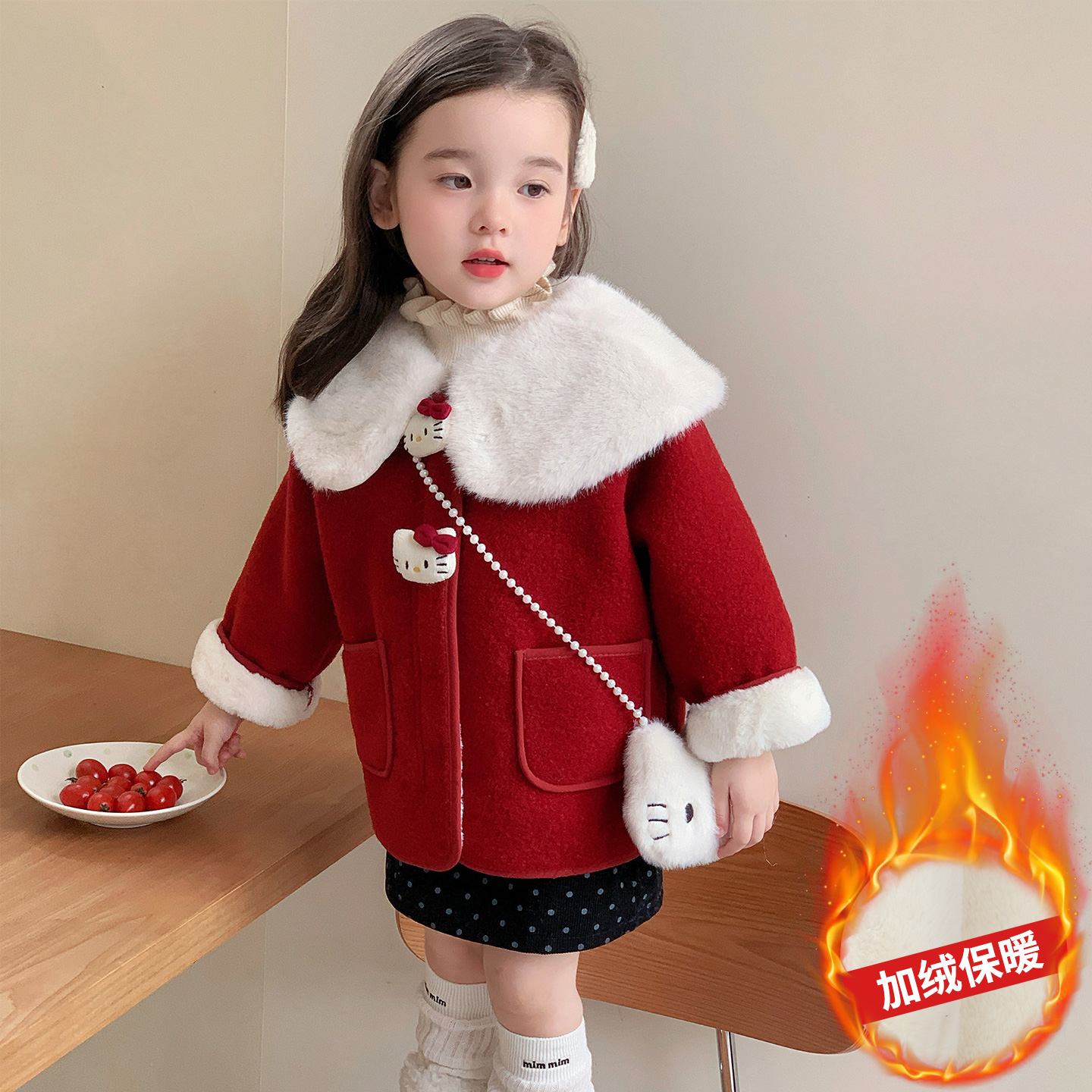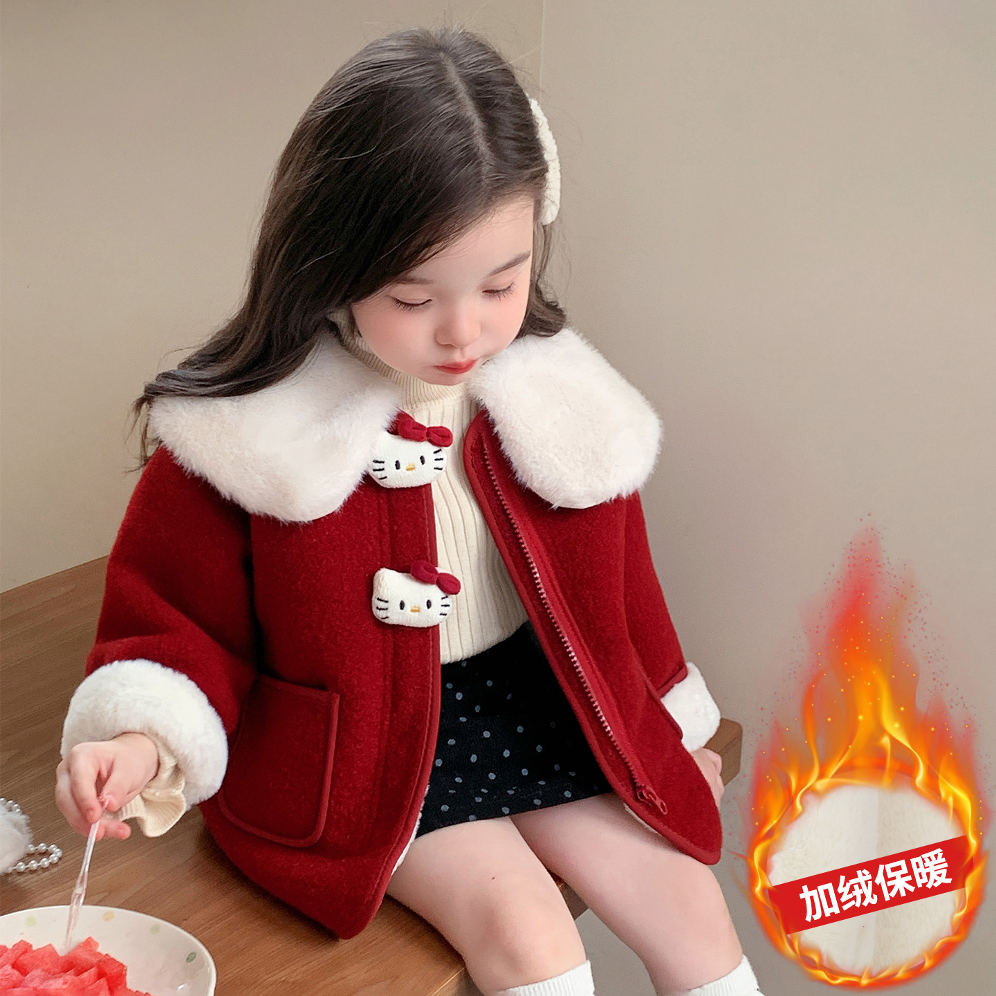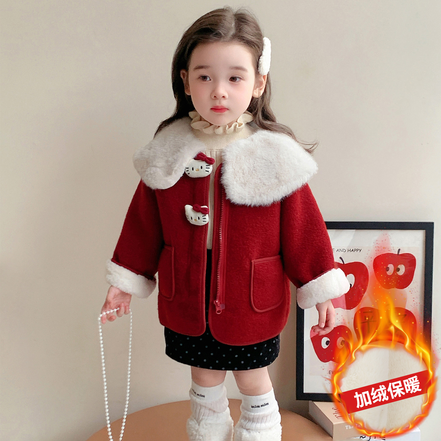 女童外套2025新款 保暖毛呢大衣 儿童洋气加绒加厚女宝宝秋冬款