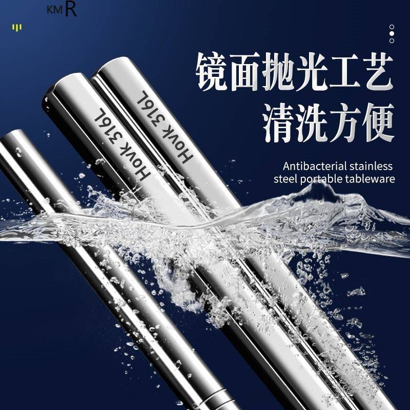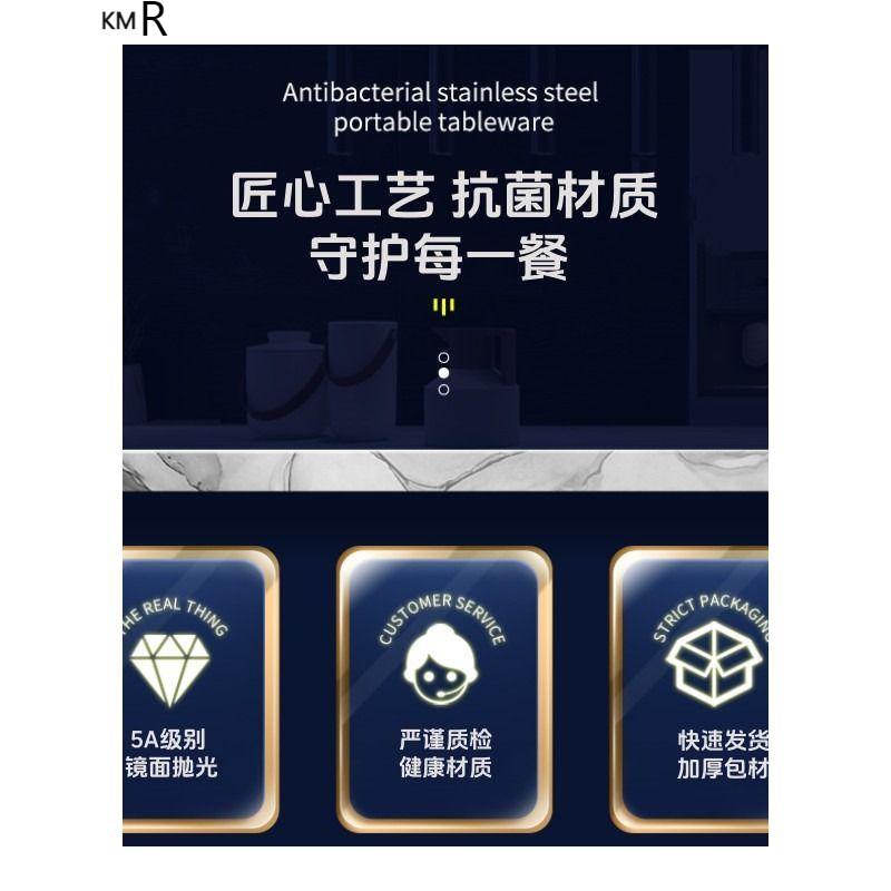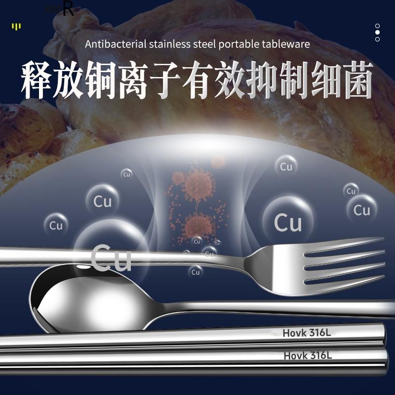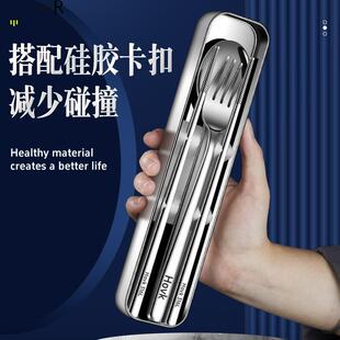 餐具盒学生收纳盒 便携式 德国316L不锈钢筷子勺子套装 三件套单人装