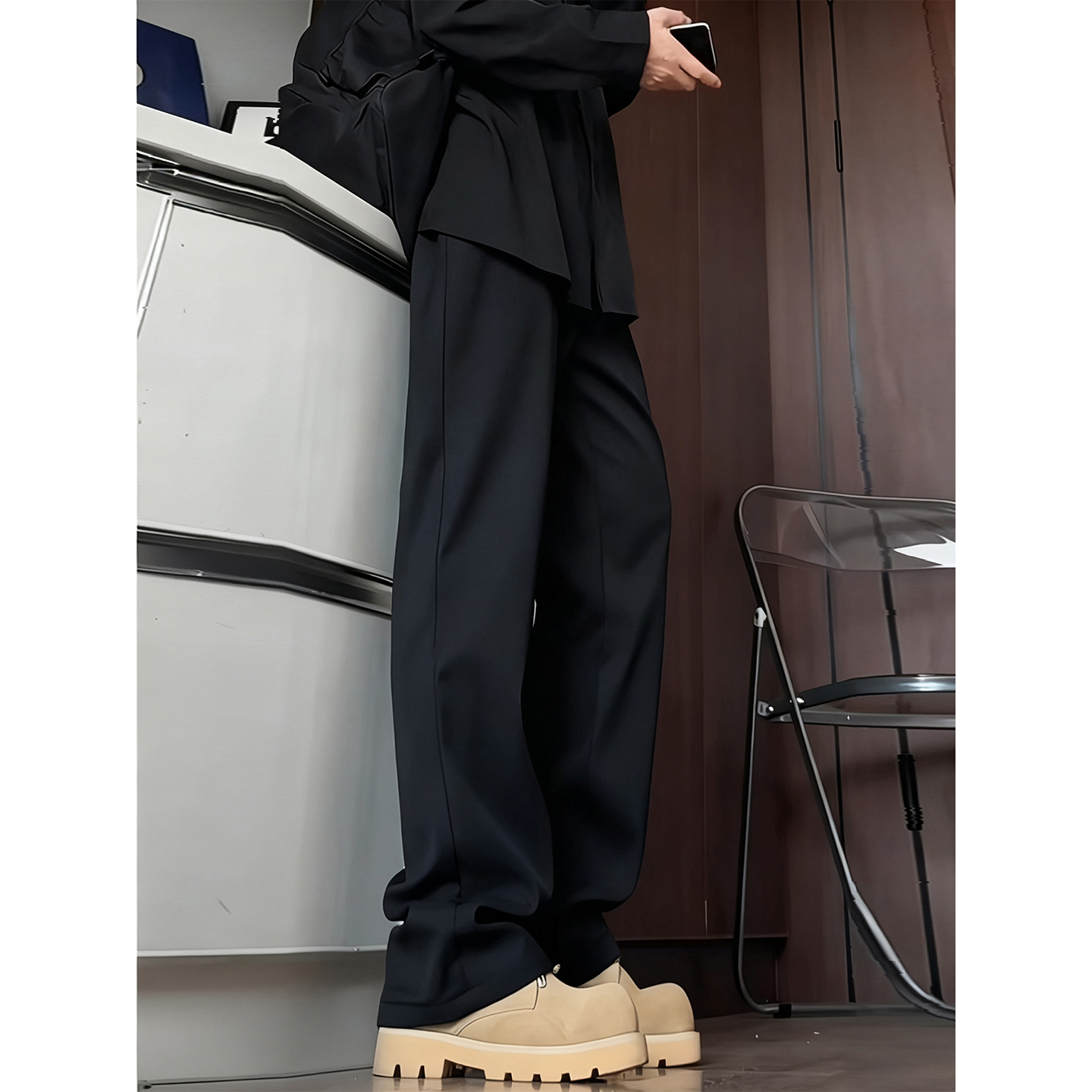 高级宽松bf慵懒垂感直筒加绒休闲阔腿裤 2025新款 子女春秋季 糯米裤