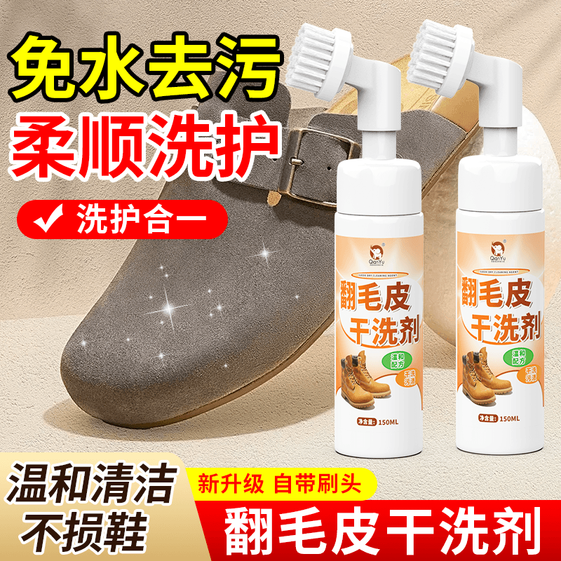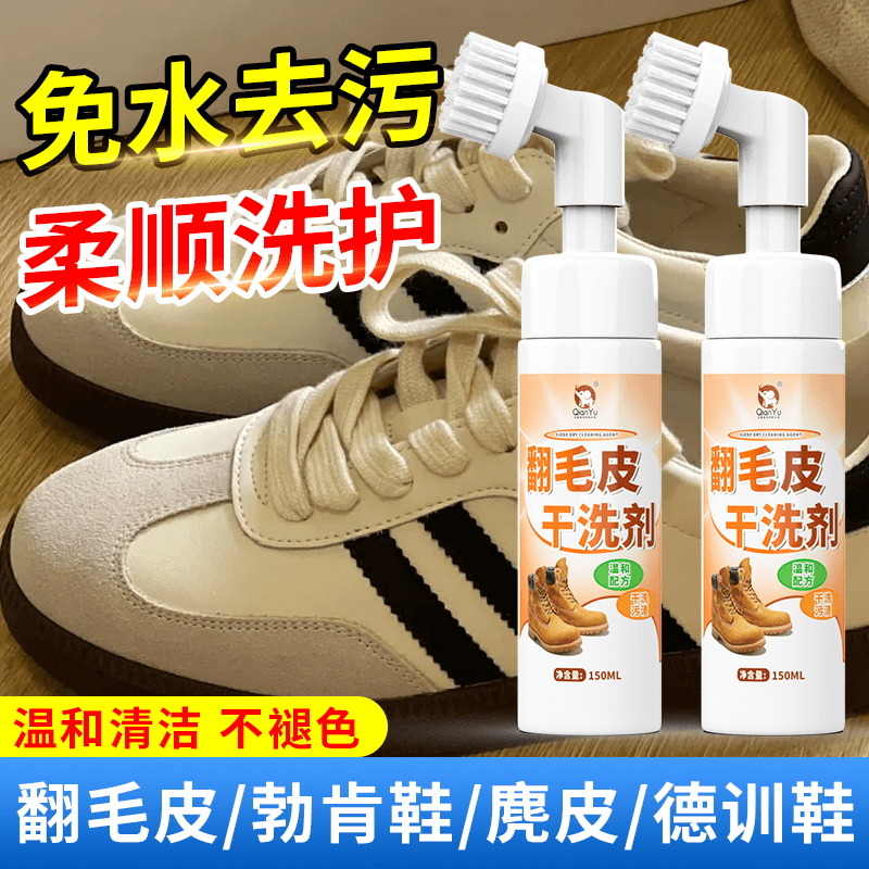 去黄去污清洗剂 德训鞋 千毓翻毛皮干洗剂绒面鞋 免水洗清洁剂勃肯鞋