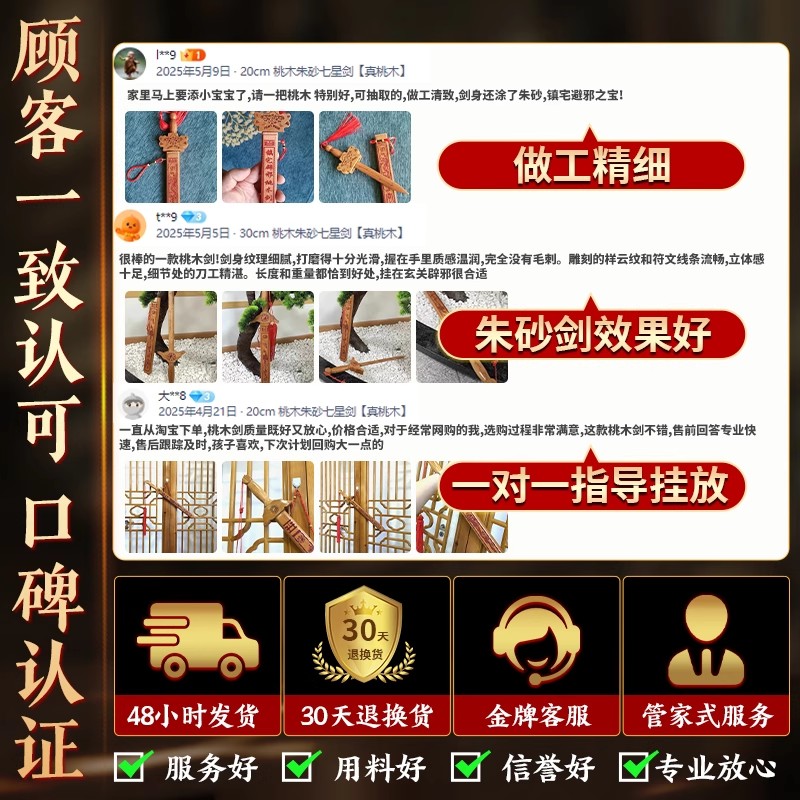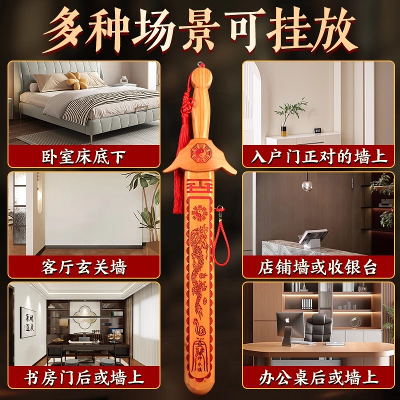 枕头下放剑婴儿防惊吓神器纯桃木实木雕刻卧室家居摆件官方旗舰店