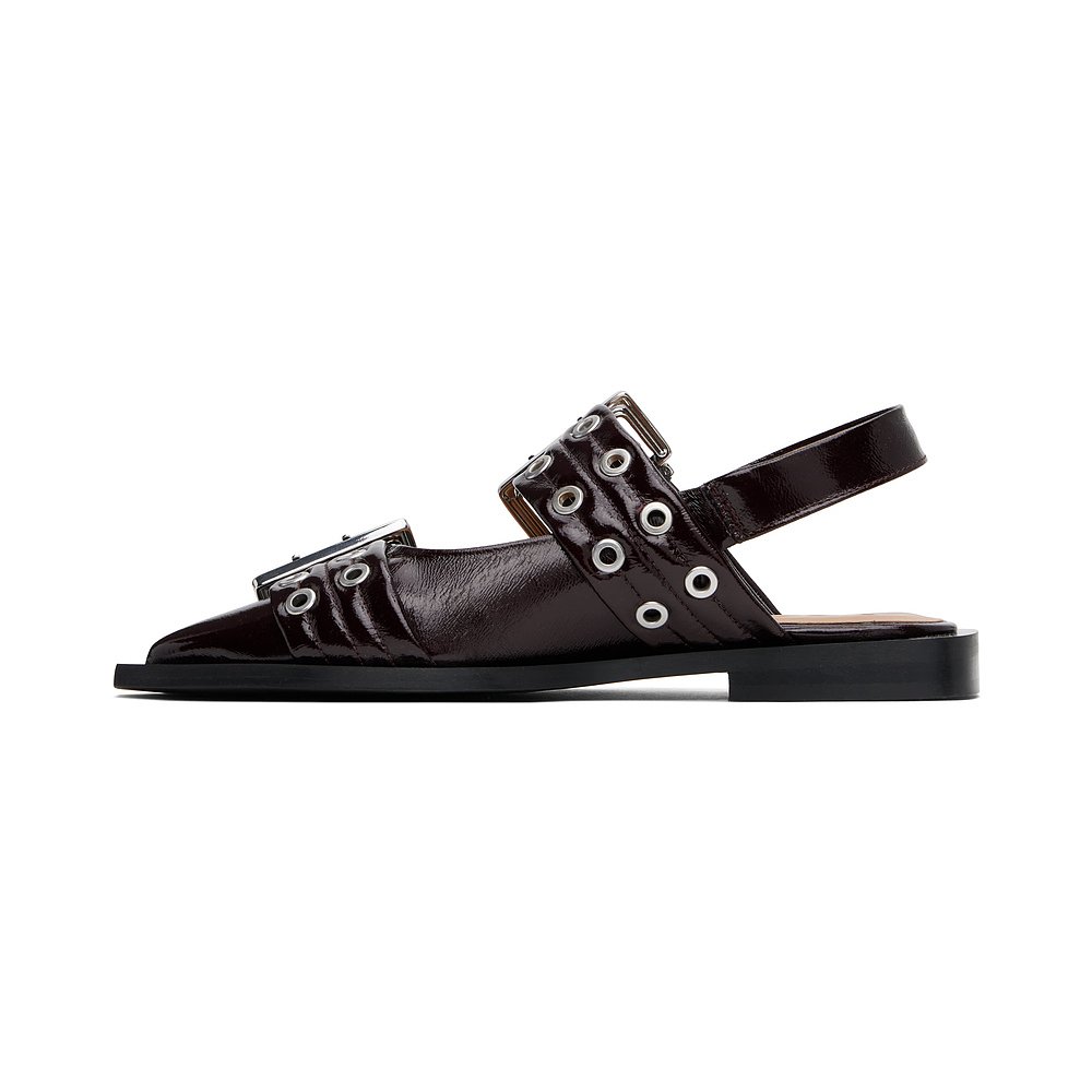 甘尼 女士 芭蕾鞋 潮奢 Buckle GANNI Feminine 1h可退 酒红色
