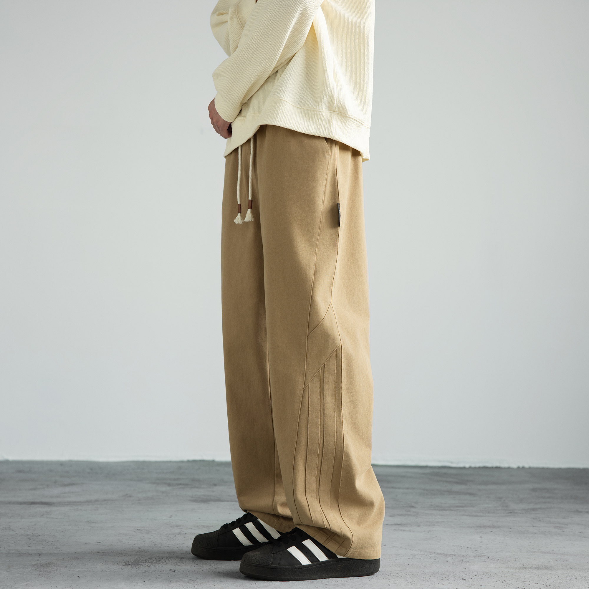 潮流卡其色设计感显瘦时尚 唐狮春秋季 宽松直筒长裤 休闲裤 男士