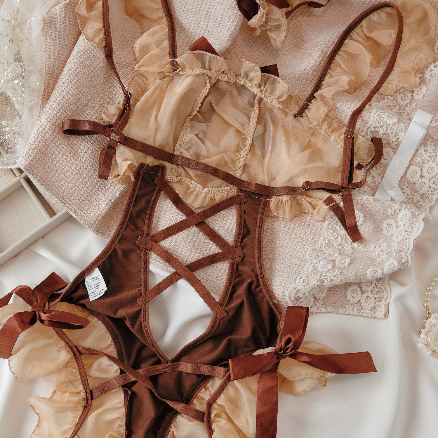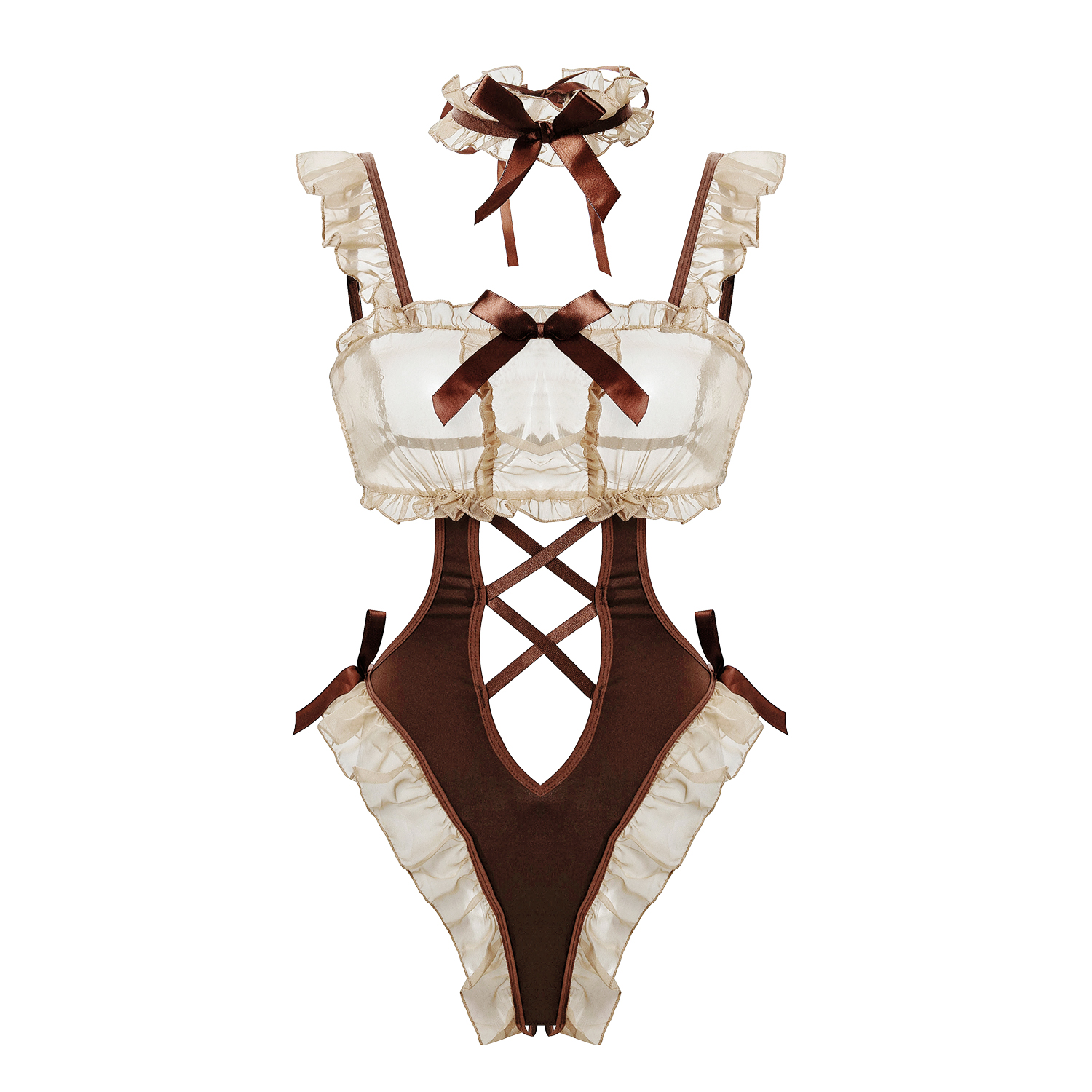 性感镂空交叉绑带连体衣女露背斩男约会萌妹小熊文胸套装