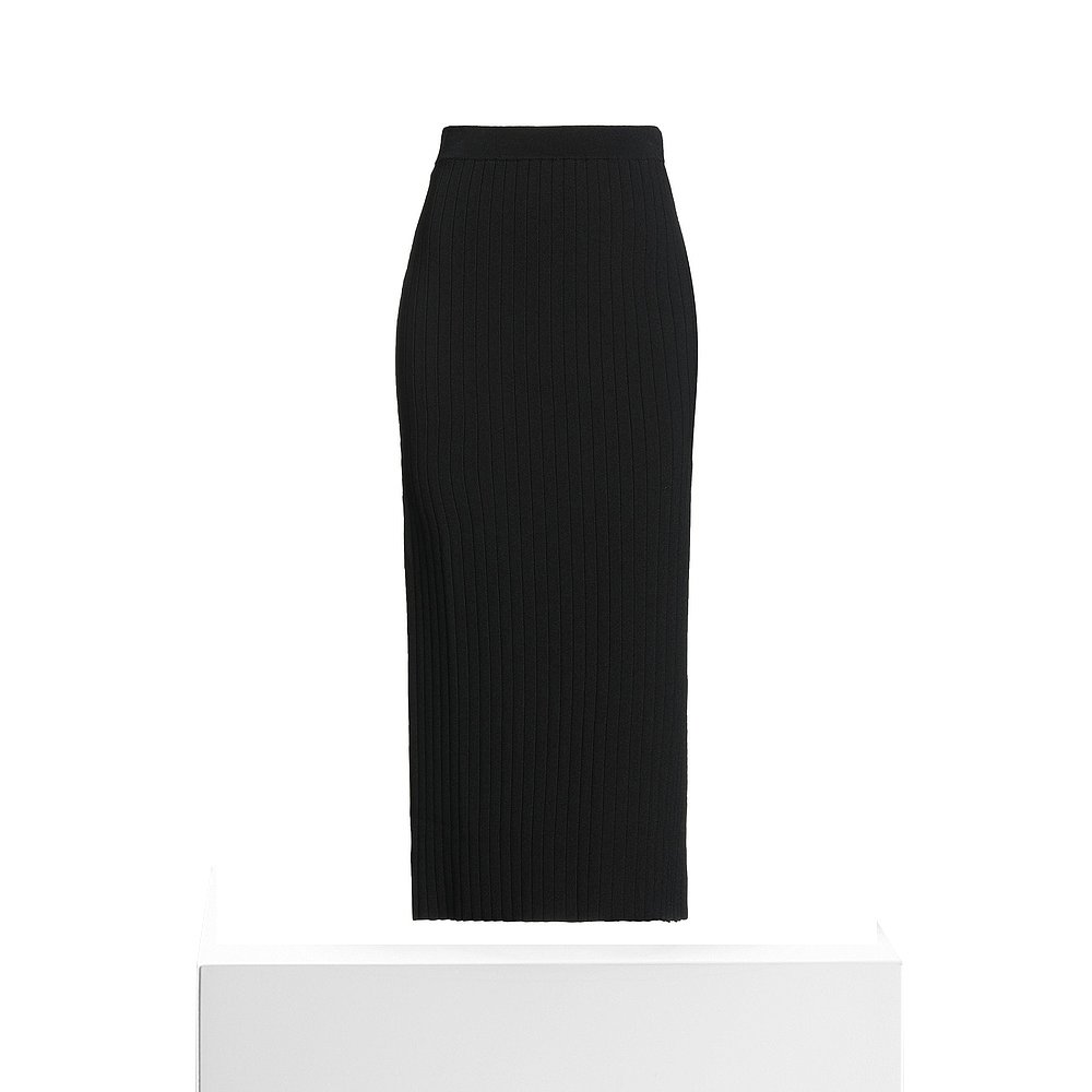 娅丽达松紧腰羊毛醋酸半身裙女秋冬2025新款 黑色裙子开叉直筒长裙