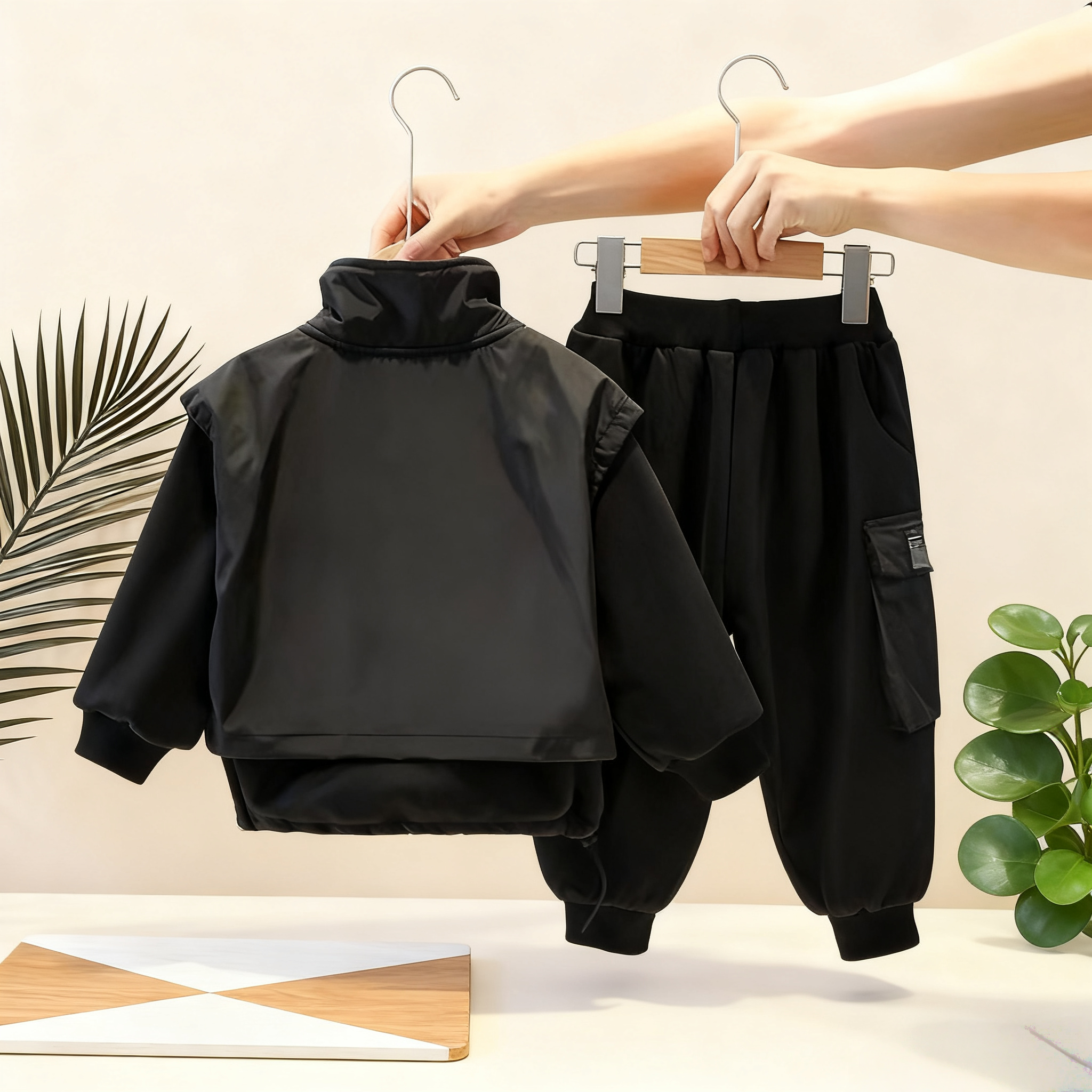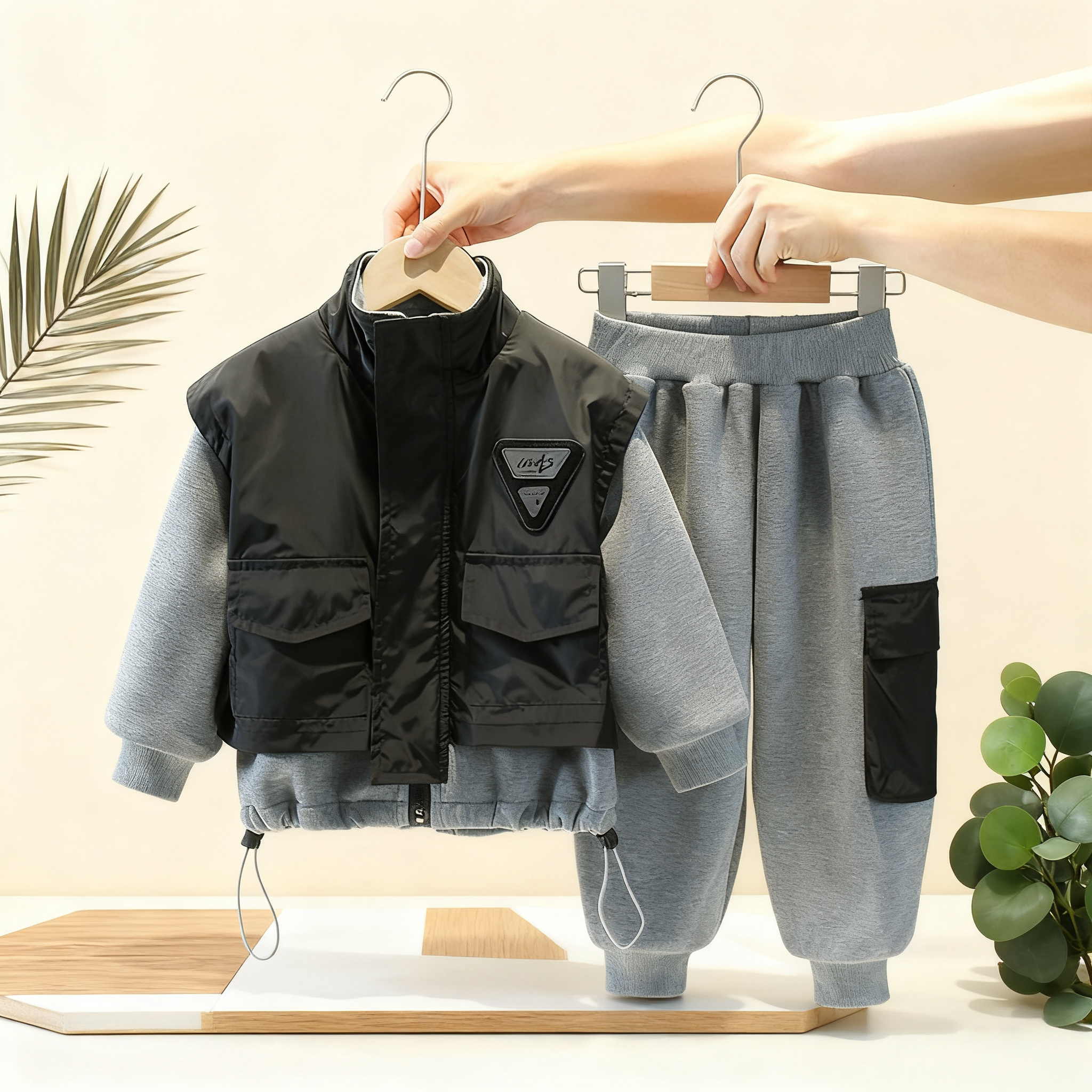 帅气男孩 儿童上衣假两件夹克冬天洋气潮童装 男童秋冬套装 2025新款