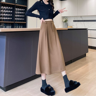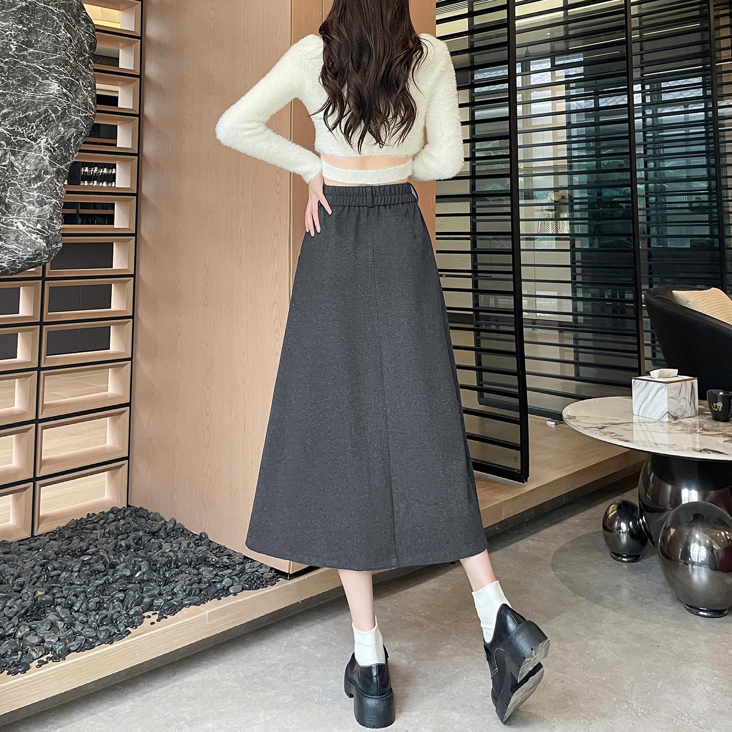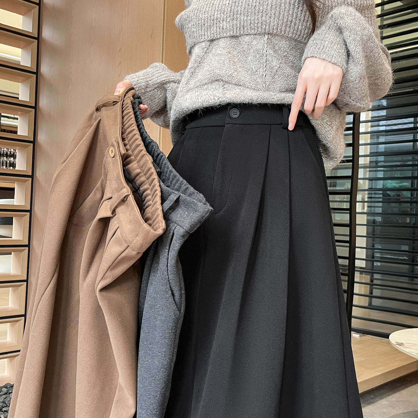 深灰色毛呢半身裙女2025秋冬新款 伞裙 A字梨形身材高腰百褶中长款