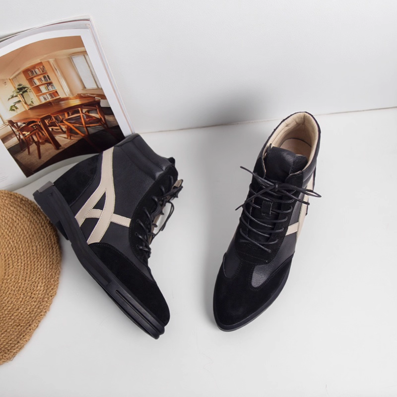 黑色增高靴子女时尚 新款 休闲皮面短靴 2025秋季 环球厚底马丁靴女款