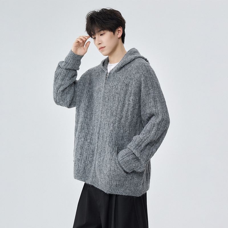 单排扣百搭情侣连帽针织衫 查尔斯桃心 新款 毛衣男春秋季 外套 开衫
