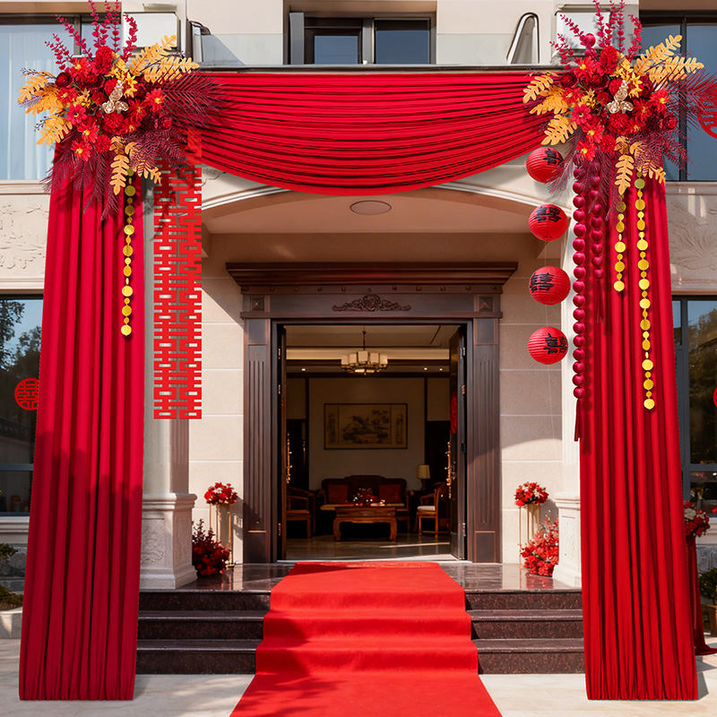 农村结婚庭院婚礼布置套装 饰品 大红喜庆布幔拉花自建房门口绸布装