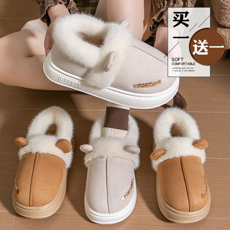 女款 男士 冬季 室内家居一对情侣保暖毛绒棉鞋 2025新款 买1送1棉拖鞋