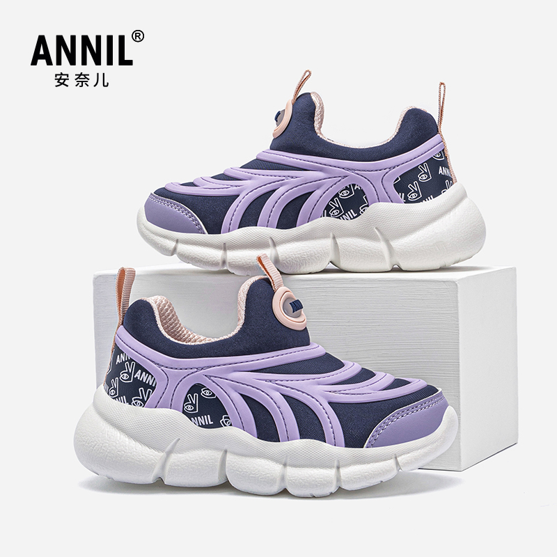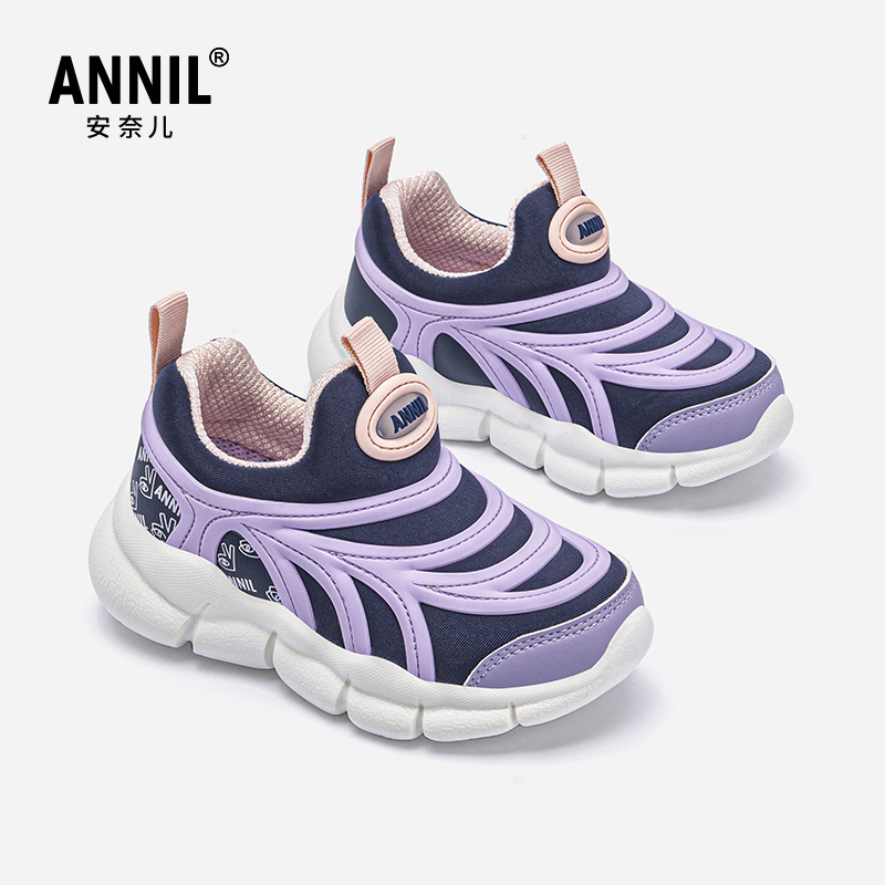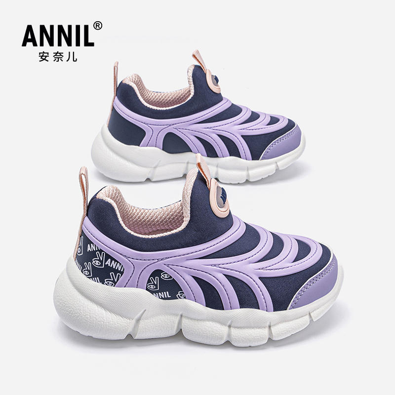 幼儿园鞋 annil安奈儿童鞋 运动鞋 一脚蹬秋冬款 子 毛毛虫女童休闲鞋