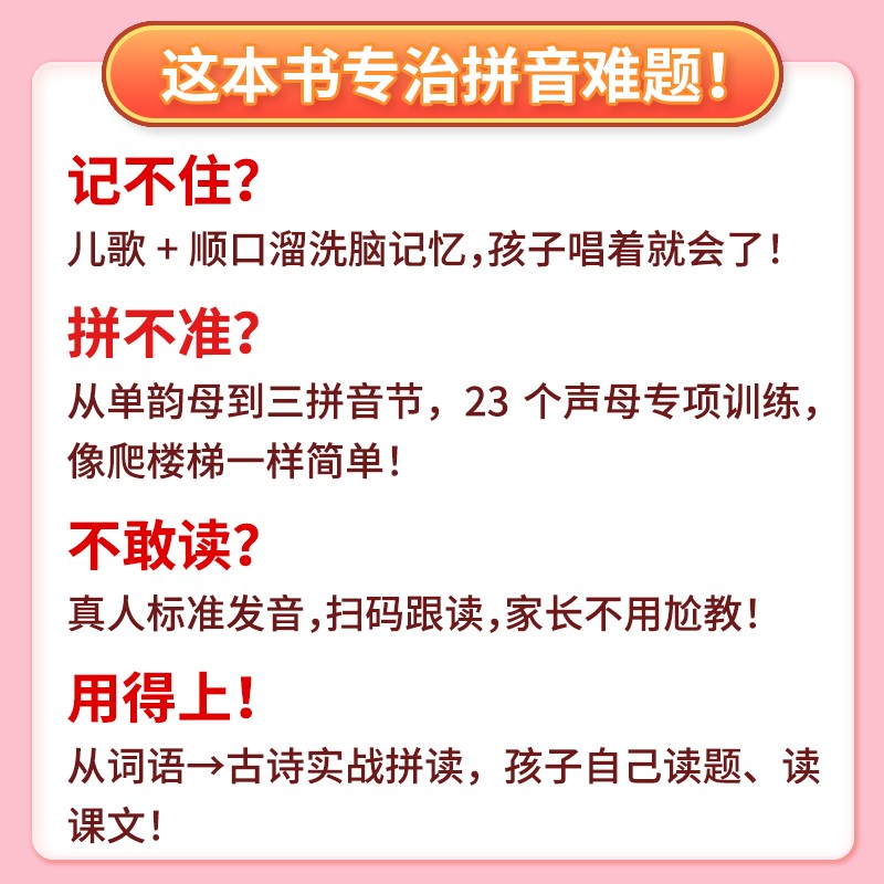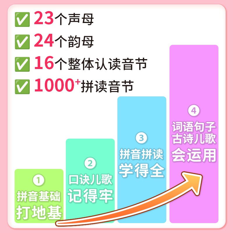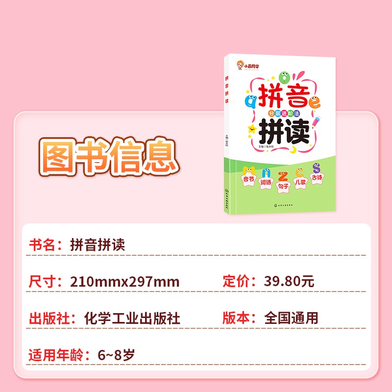 小晨同学拼音拼读分层进阶法拼音拼读训练习册幼小衔接小中大班幼儿园升一年级语言启蒙声母韵母学习神器人教版 幼升小拼音每日一练