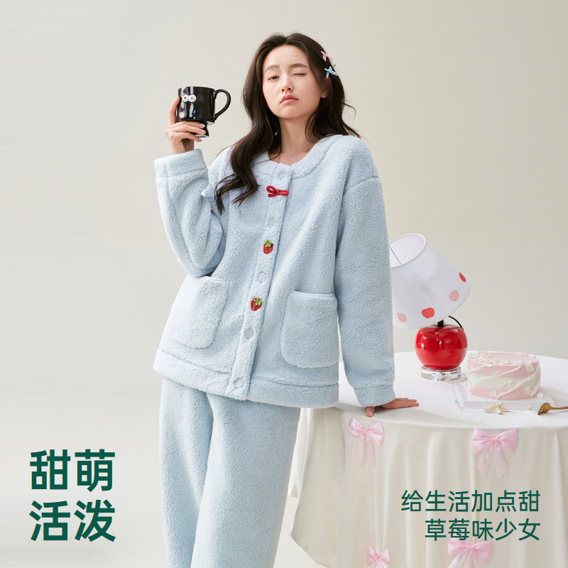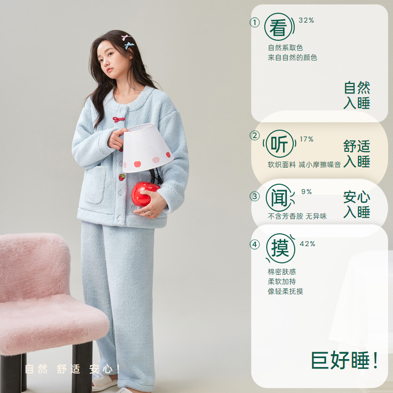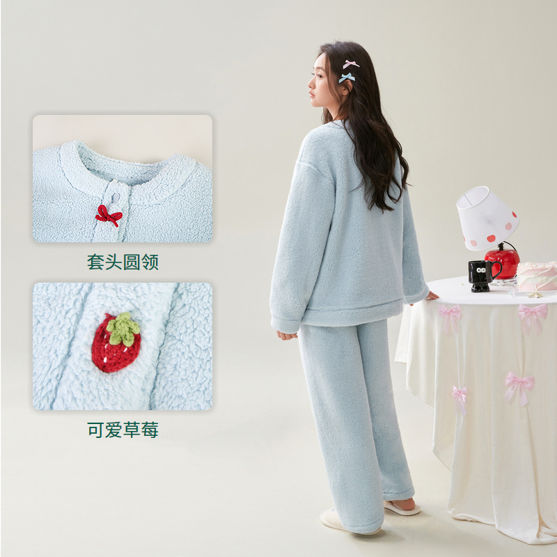 维密宅度假系列奶舒绒睡衣轻柔抗静电保暖家居服套装 女可外穿