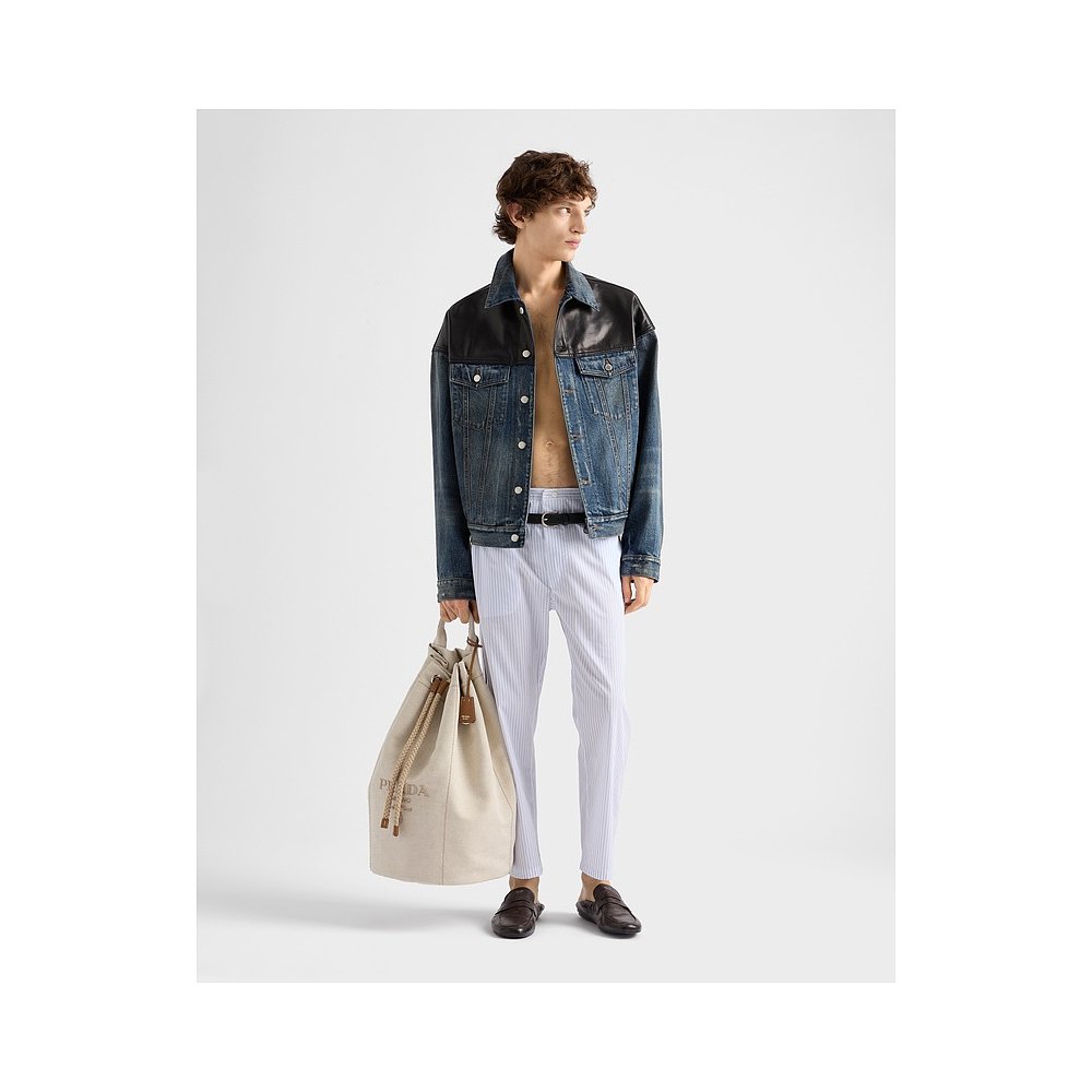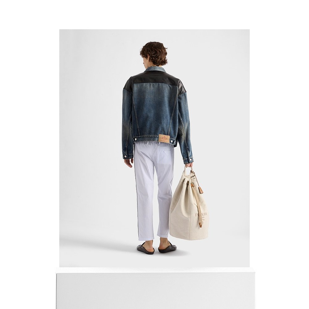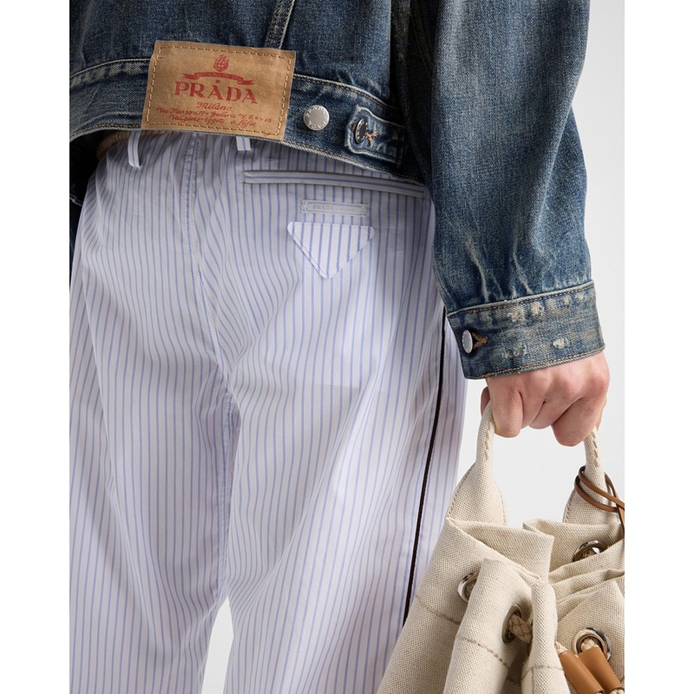 浅蓝色棉条纹长裤 白色 男士 自营欧洲直邮Prada普拉达