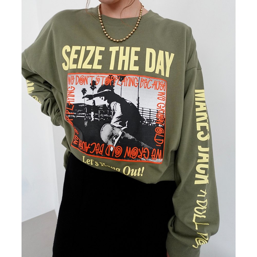 日本直邮SEIZE T恤 THE 女士秋冬长袖 街头风图形印花 DAY 1h可退