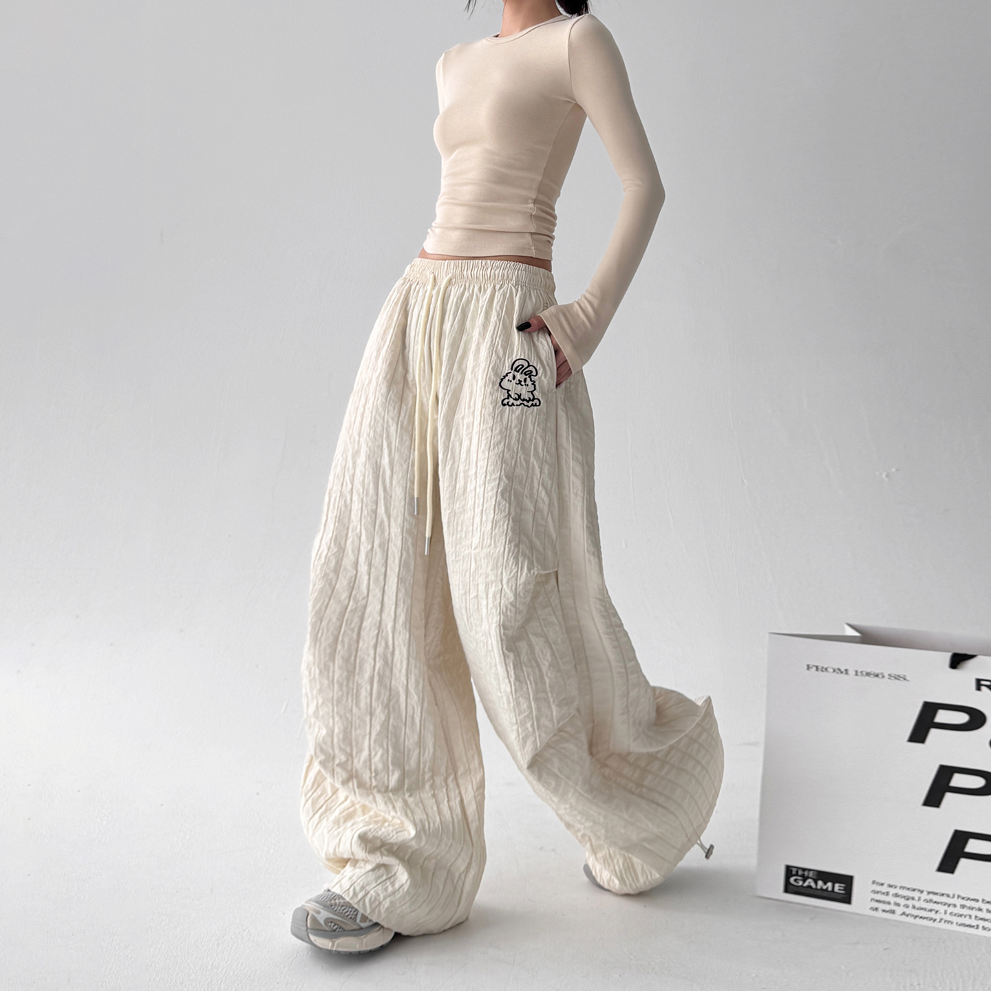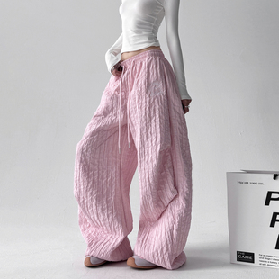 女高个子粉色温柔宽松高腰休闲裤 2025秋冬新款 辣妹肌理感阔腿裤