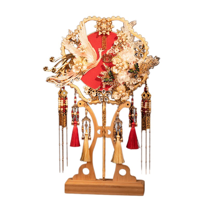 新娘结婚团扇重工双面双色出嫁中式 秀禾喜扇子diy材料包成品古风