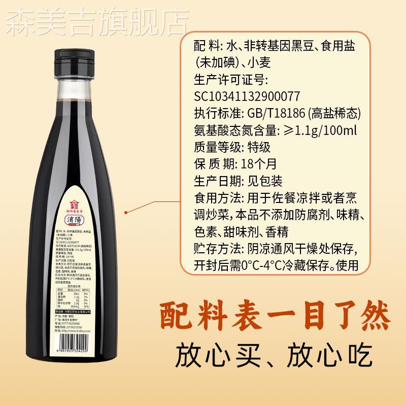 黑豆酿造酱油老式 零添加特级天然古法酿造无麸质油超市官方旗舰店