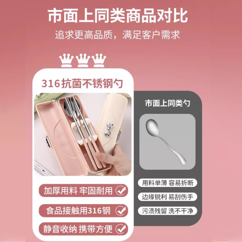 日本小学生筷子勺子套装 儿童专用316不锈钢食品级便携餐具盒女V