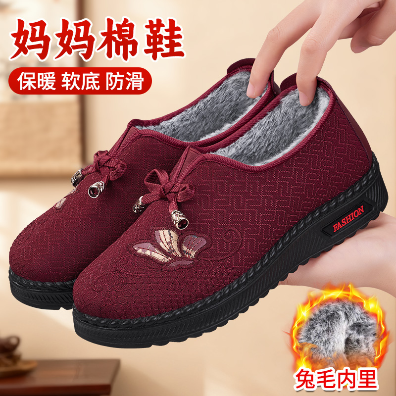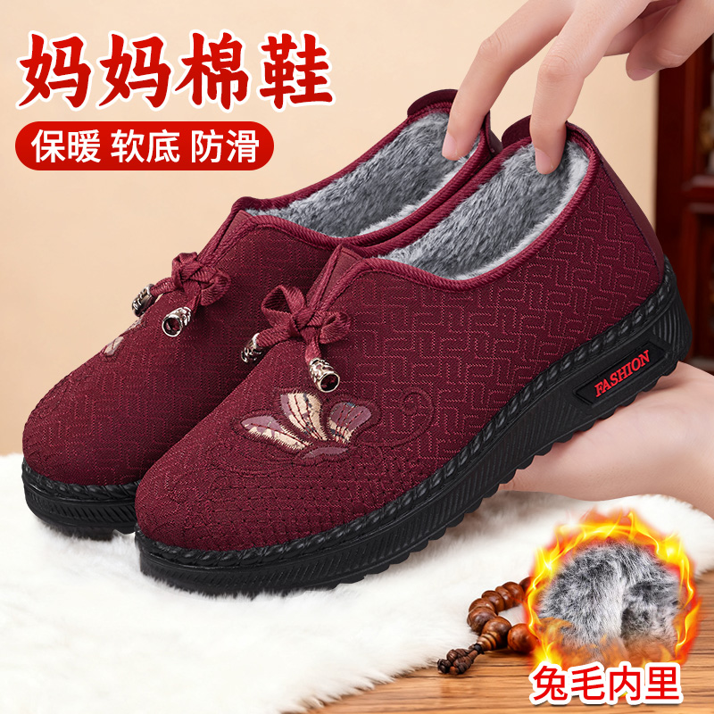 妈妈鞋 冬季 加绒加厚保暖防滑老太太奶奶鞋 女老人棉鞋 老北京布鞋