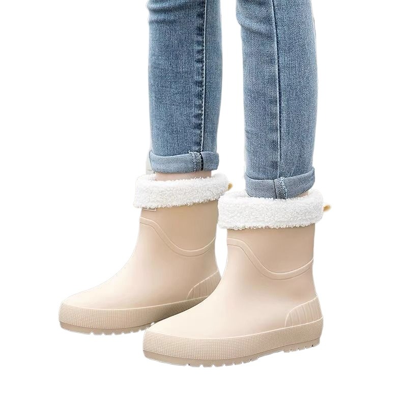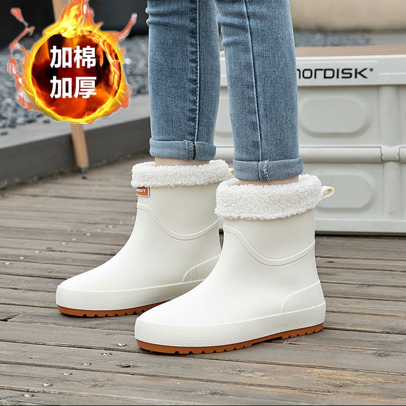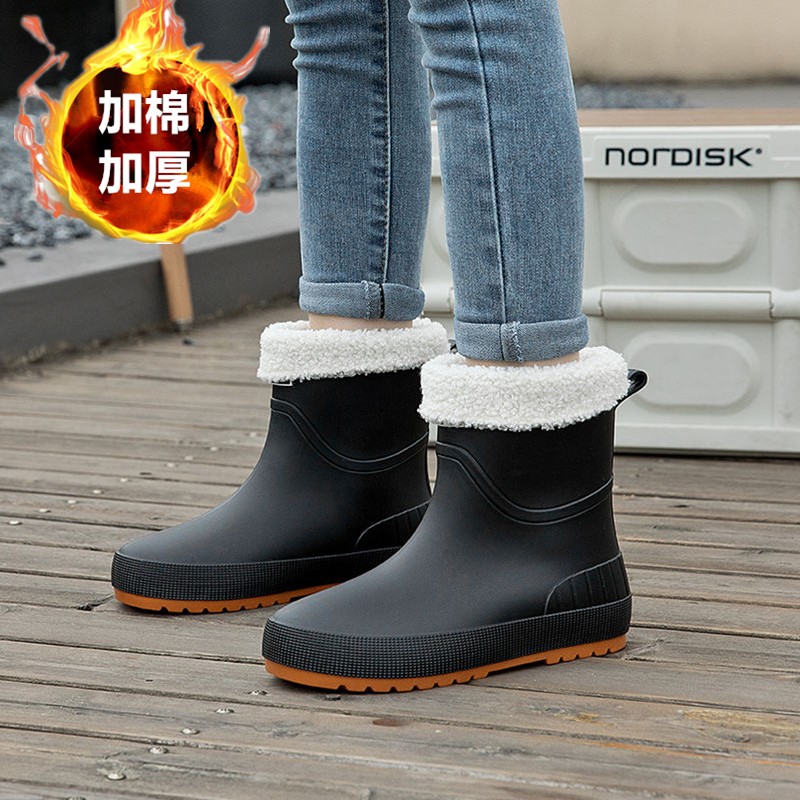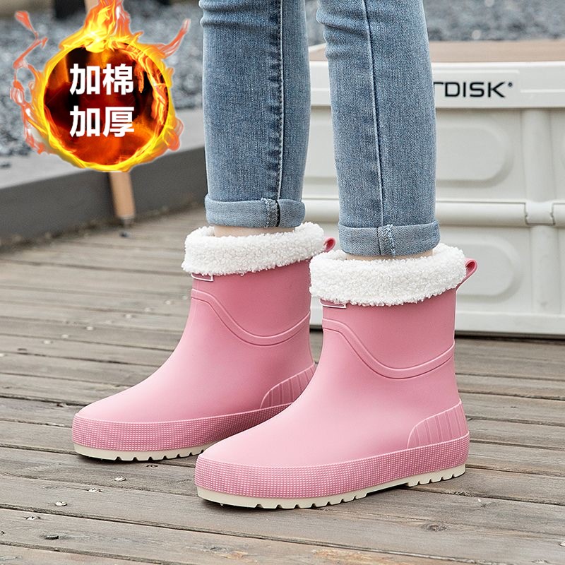 防滑厨房轻便胶鞋 外穿雨靴中筒防水鞋 短筒 女时尚 加棉可拆日韩雨鞋