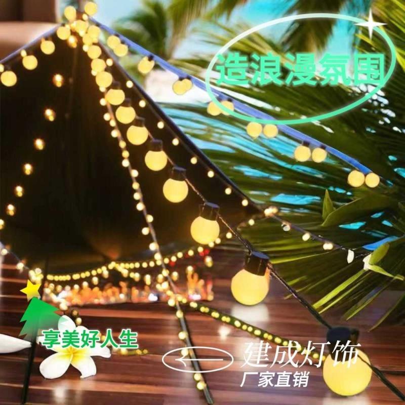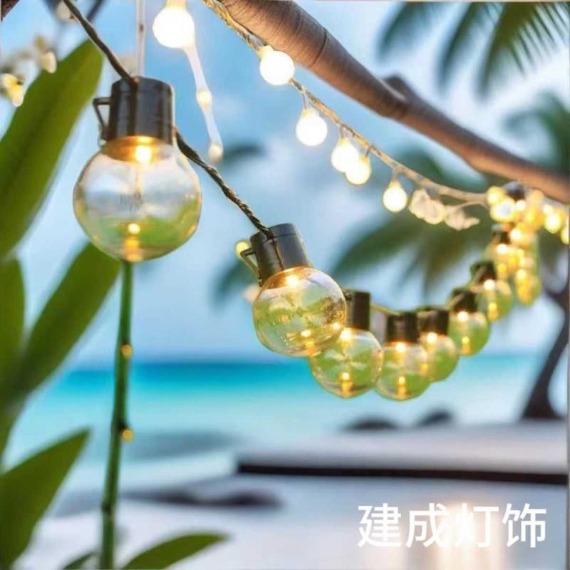 太阳能麻绳灯串满天星铜线灯户外防水彩灯串庭院餐厅吧台布置吊灯