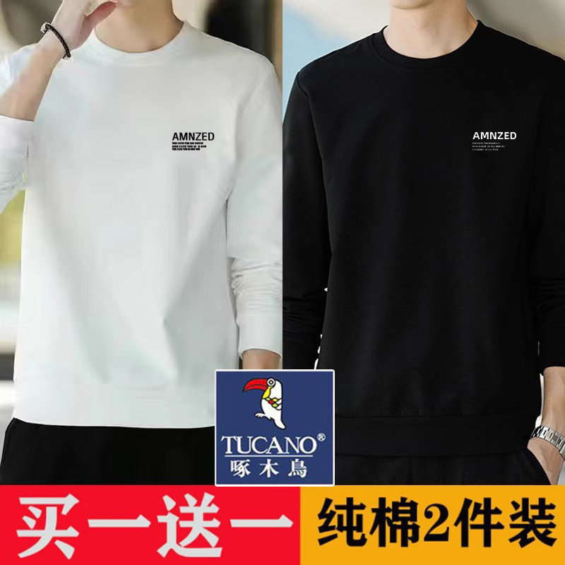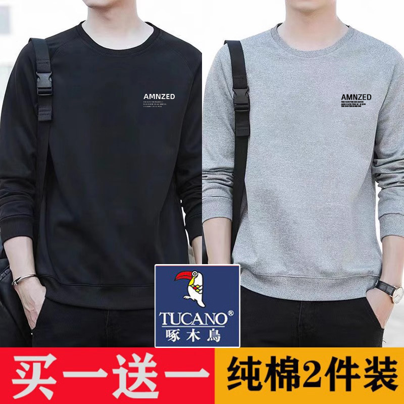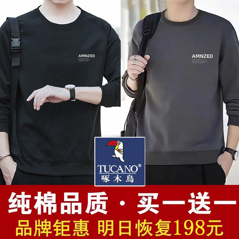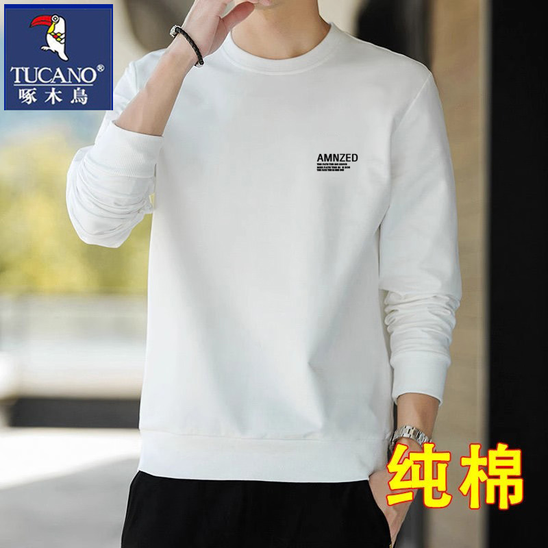 打底衫 套头加绒男士 潮流 t恤休闲体恤衫 啄木鸟卫衣男春秋圆领长袖
