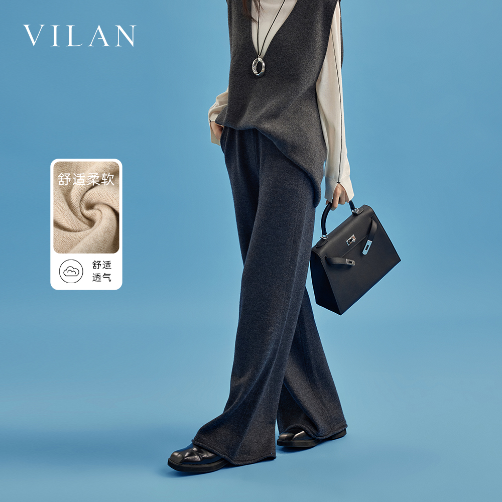 女加厚慵懒风垂感软糯休闲直筒长裤 复古针织阔腿裤 慧兰法式 vilan