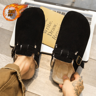 D1P1DAH5预 加毛厚底包头休闲鞋 方枪枪同款 百丽厚切吐司勃肯拖鞋