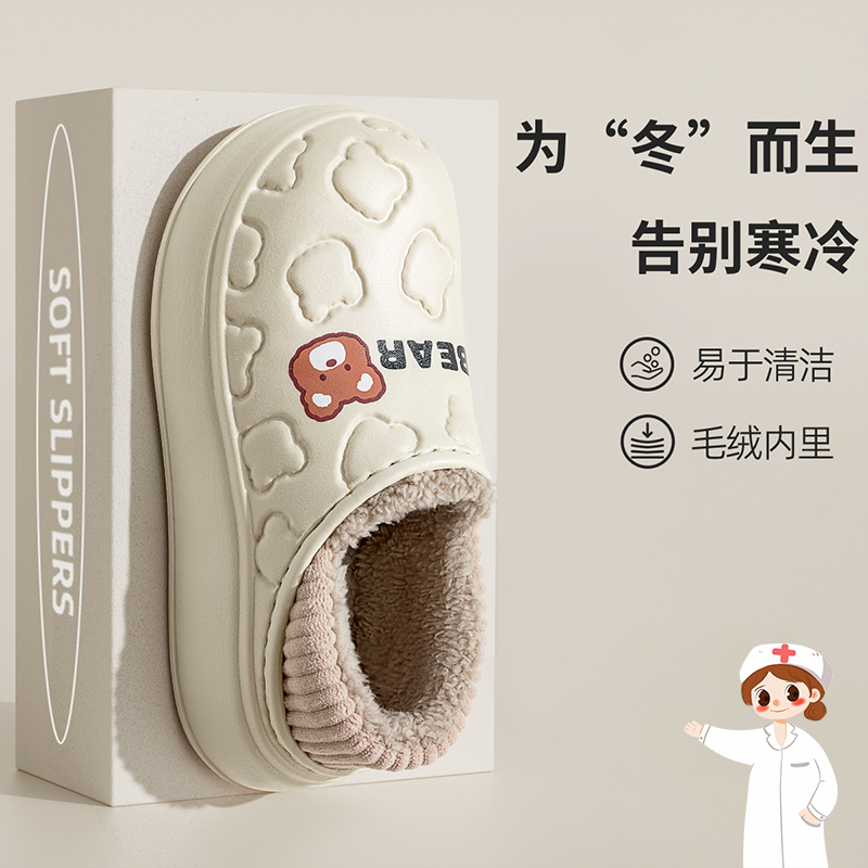产后2025新款 女士秋冬季 加绒厚底 防滑包跟11月份棉拖鞋 孕妇月子鞋