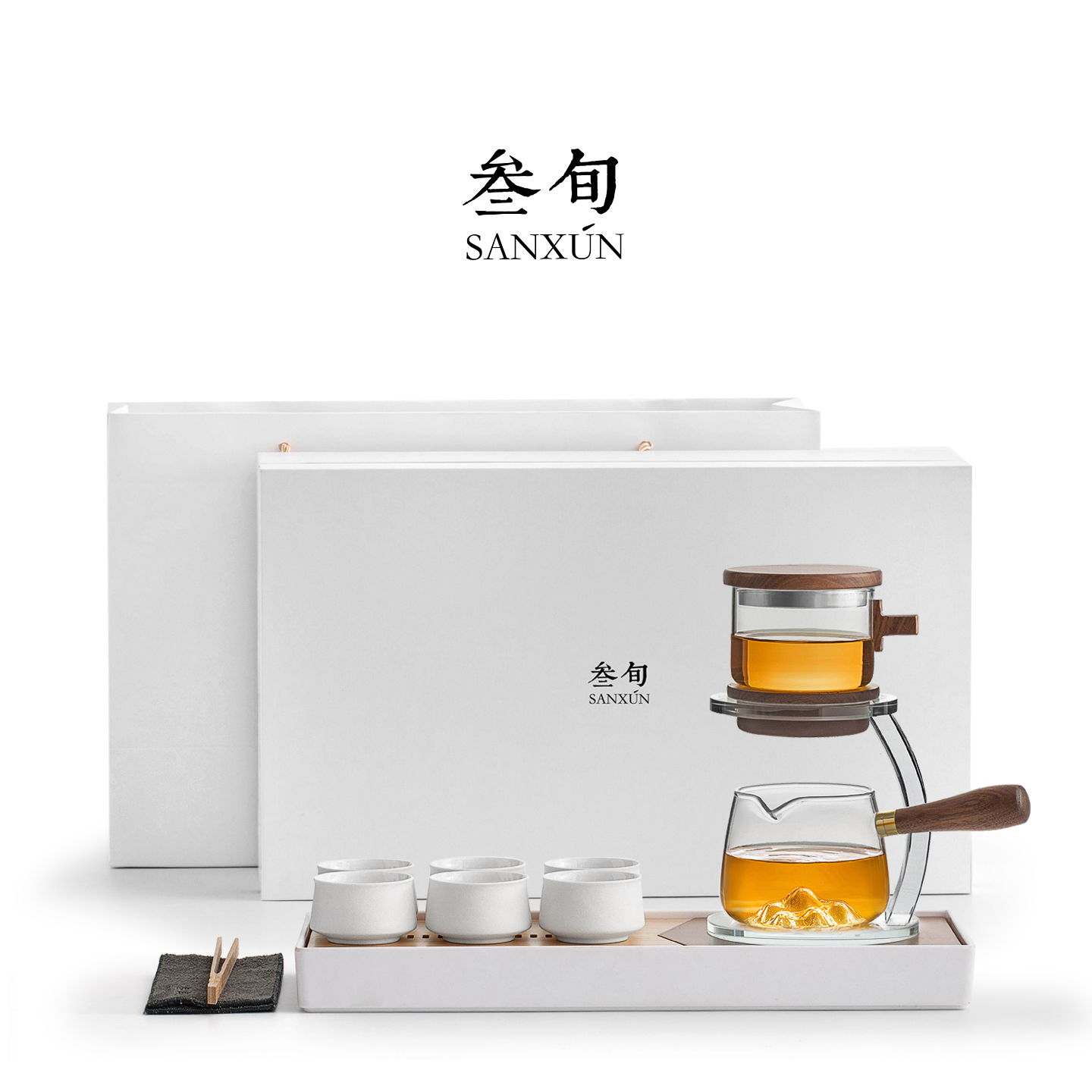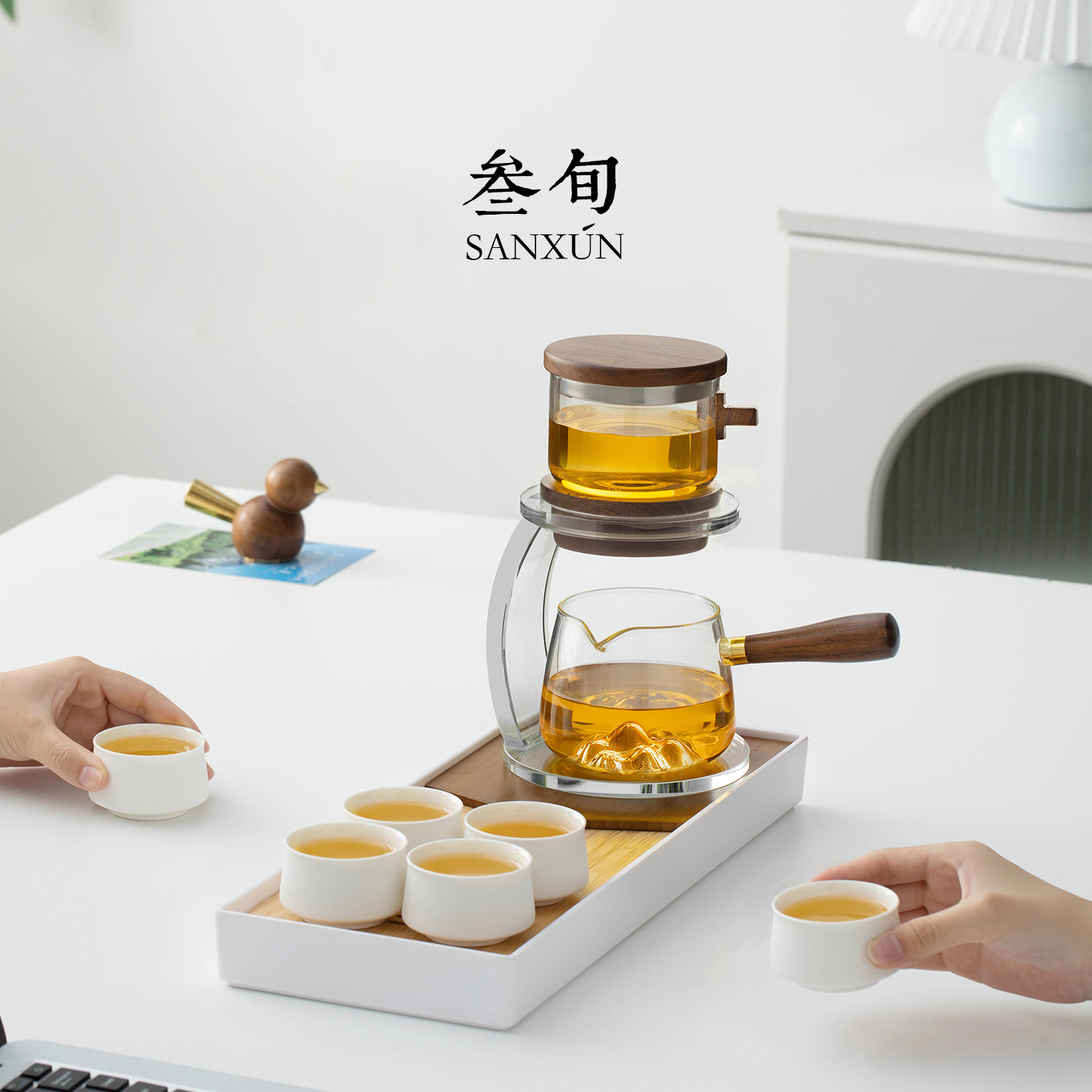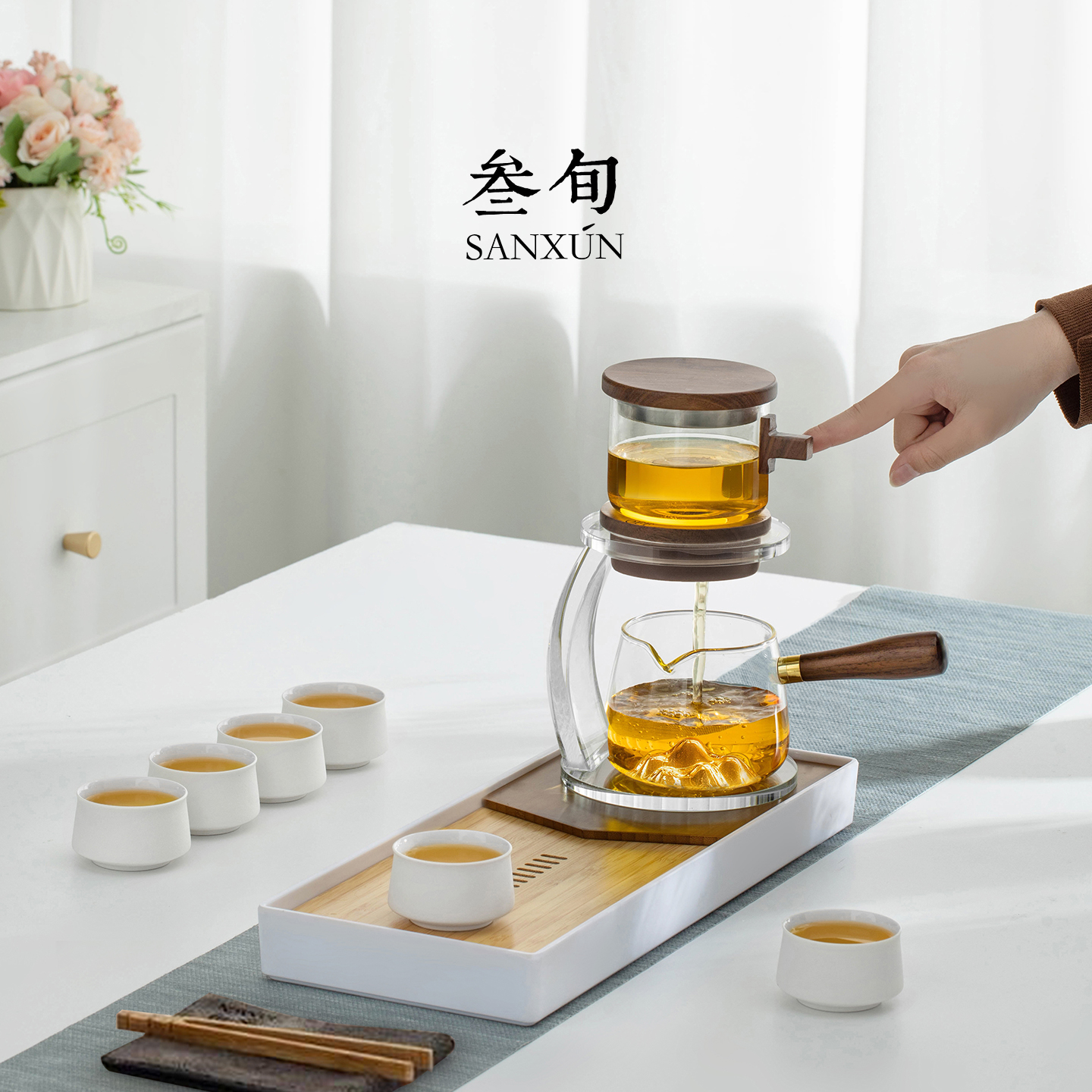 懒人茶具套装 家用喝茶防烫泡茶壶陶瓷功夫茶杯石磨半自动冲茶神器