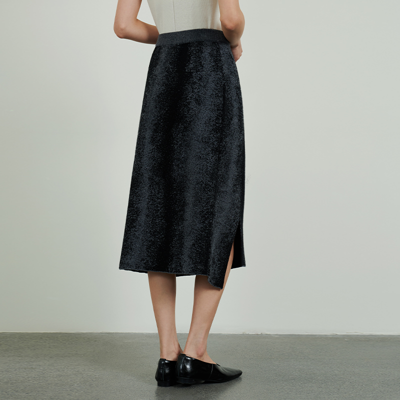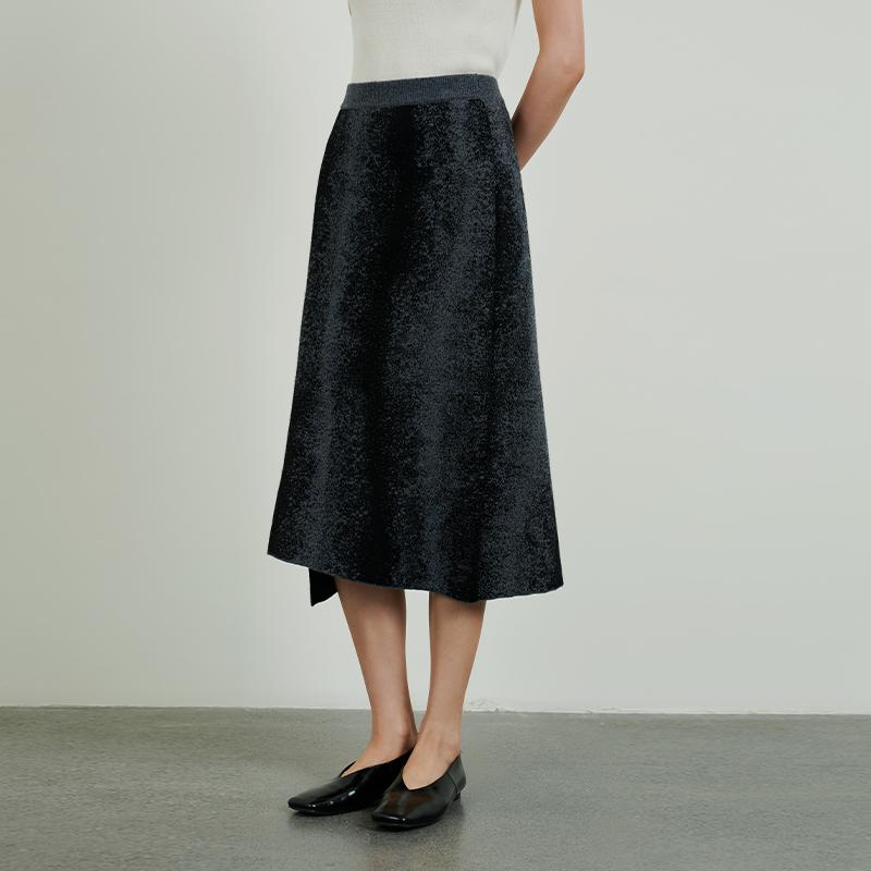 佐丹奴中长花苞裙女秋冬新款 磨毛破骨松紧腰松弛感半身裙13465866