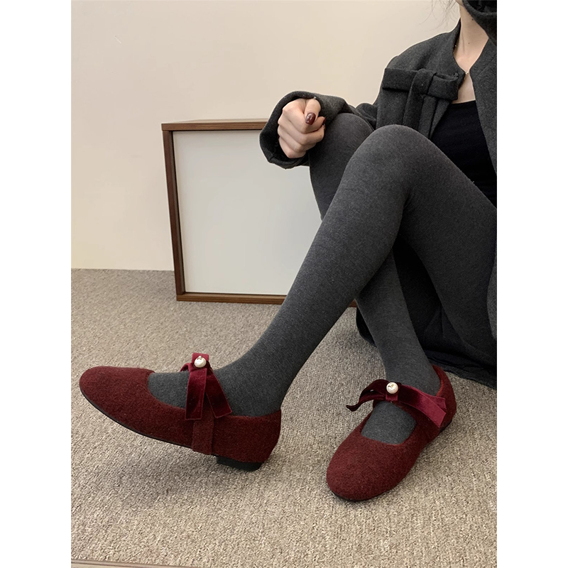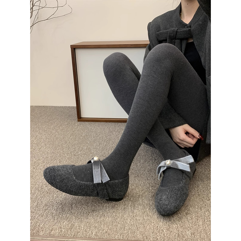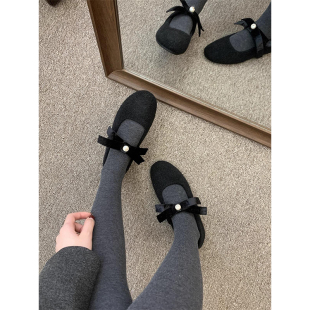灰色毛呢毛毛鞋 棉鞋 女秋冬外穿2025新款 豆豆鞋 加绒玛丽珍单鞋 法式