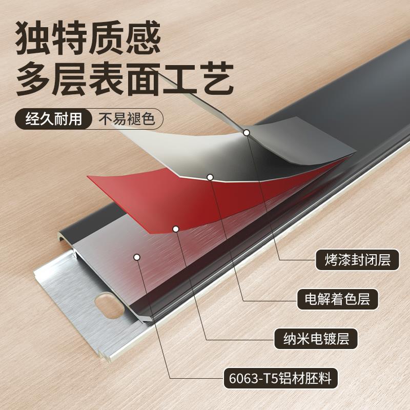 铝合金踢脚线6cm8cm极窄黑色卡扣式 贴脚线金属弧形不锈钢地脚线
