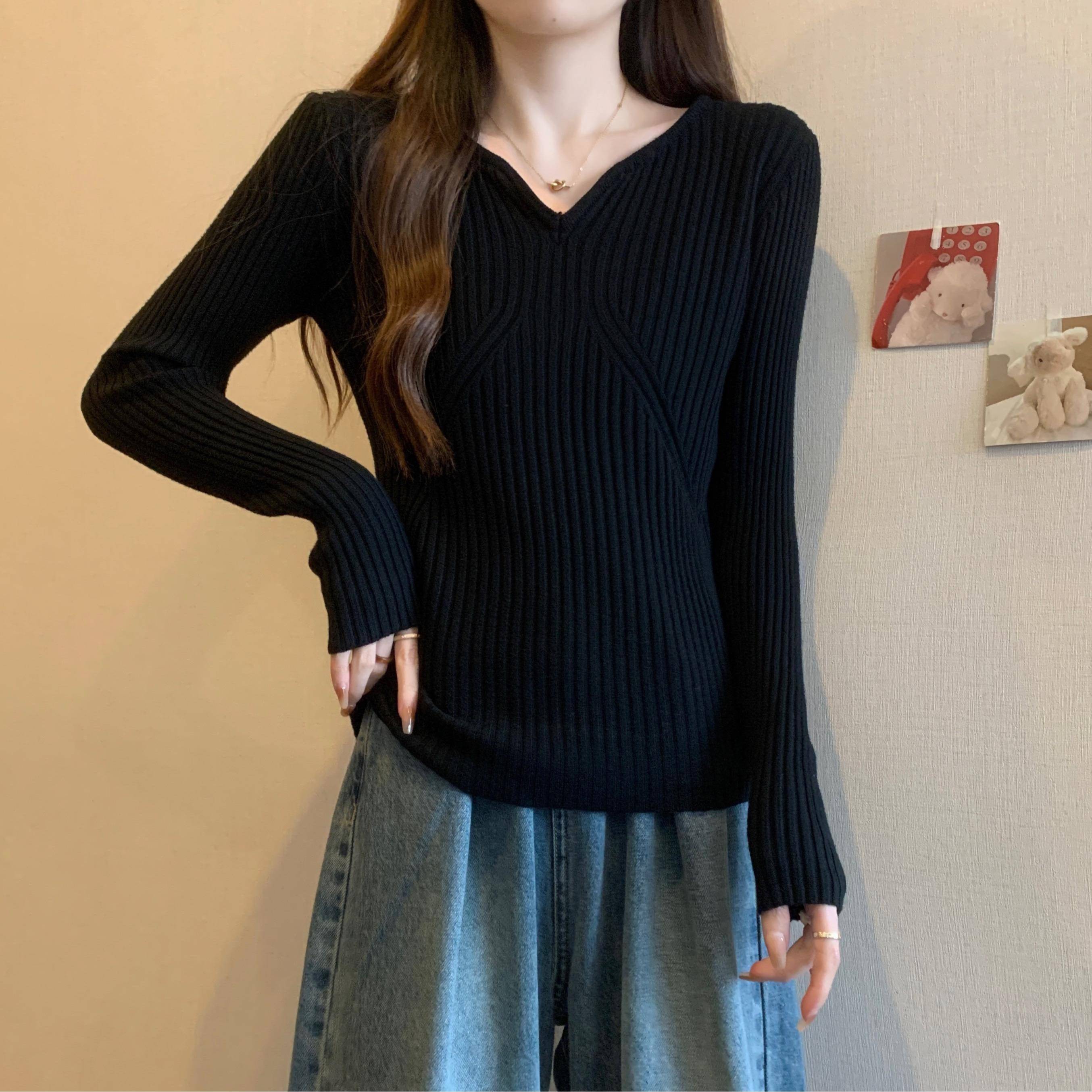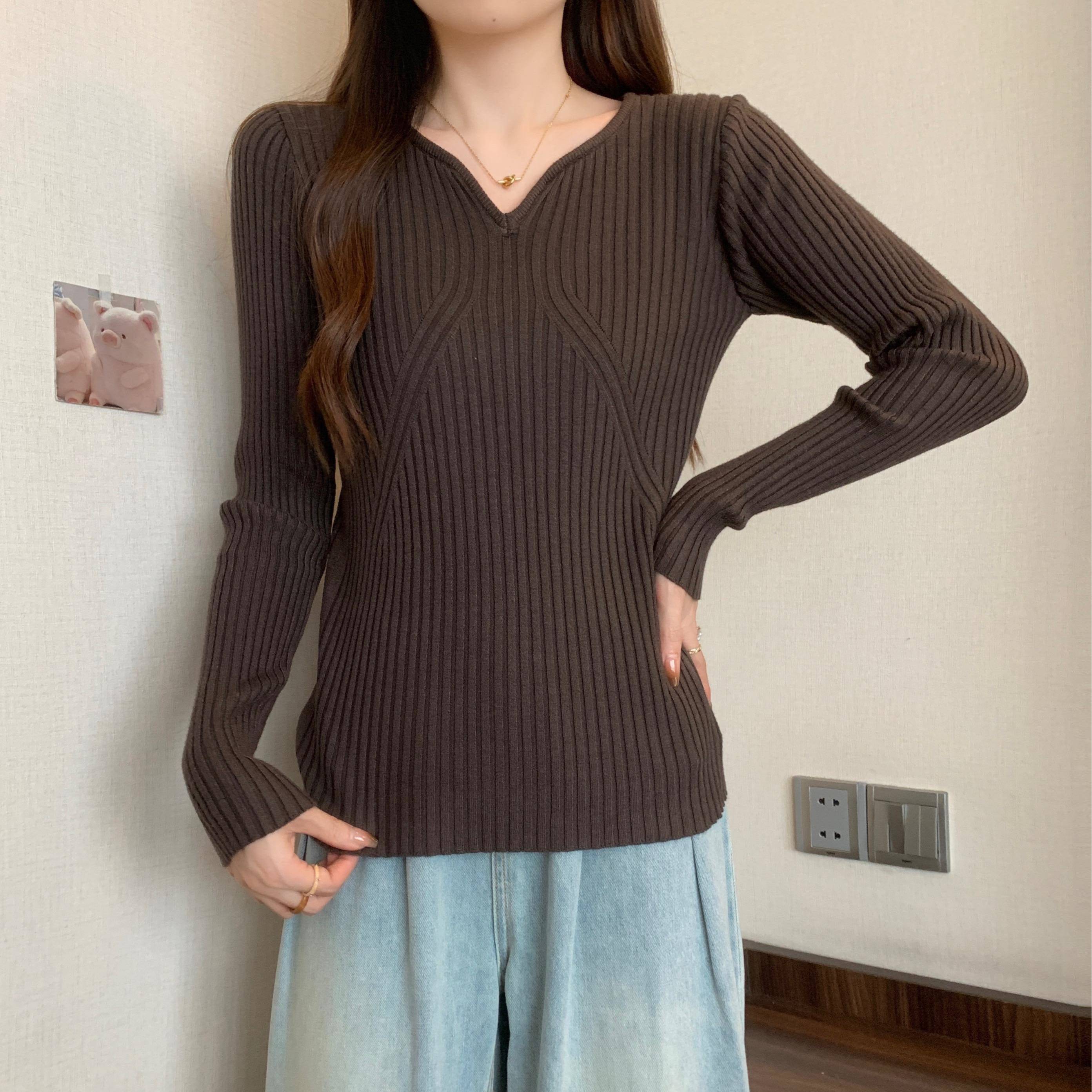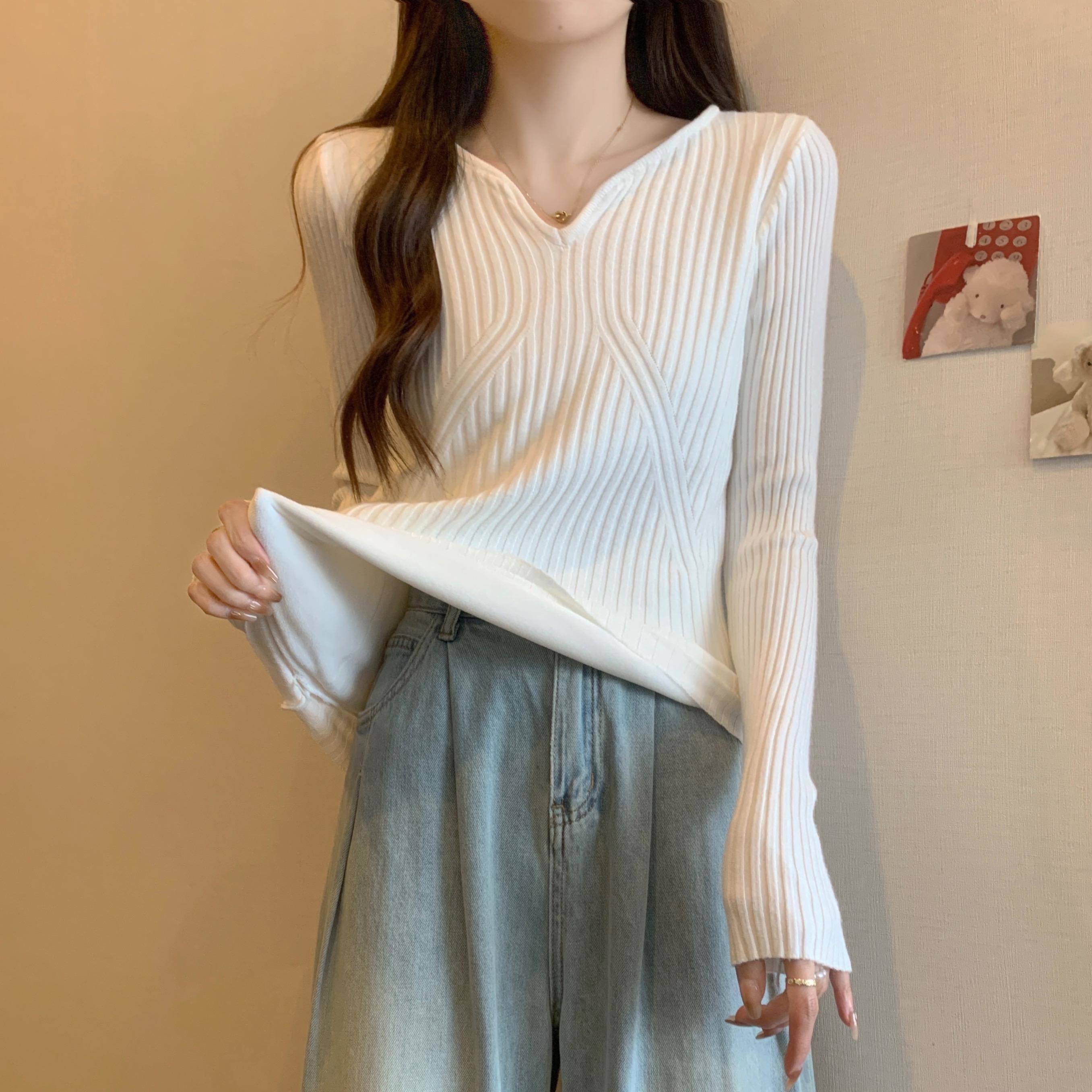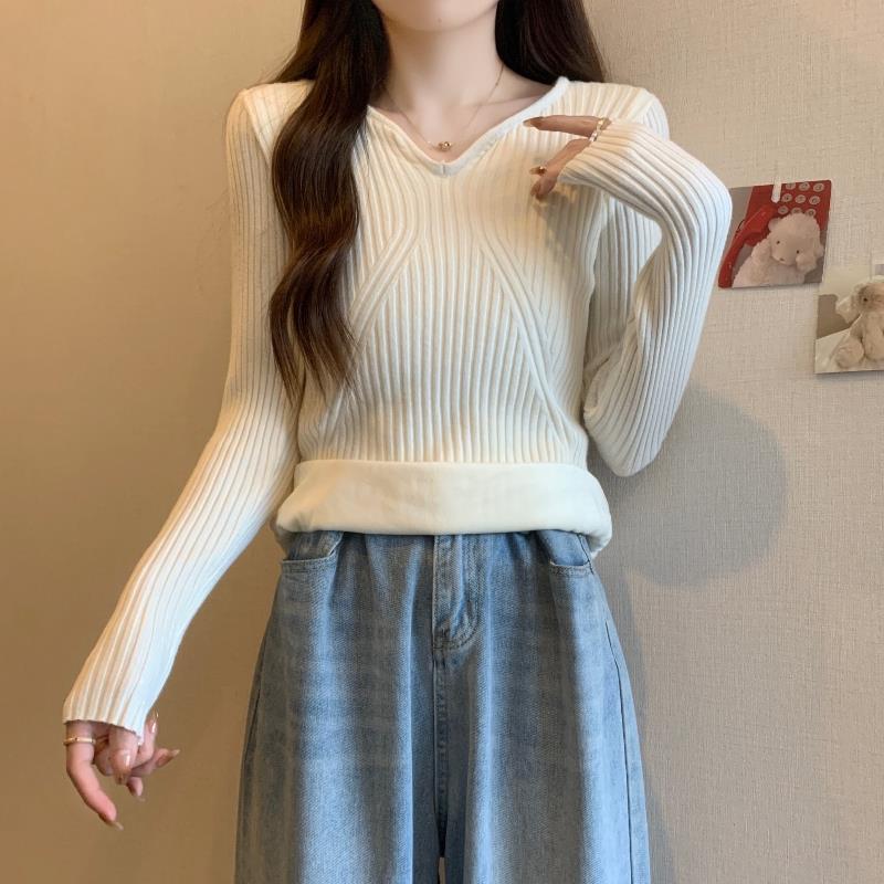 秋冬加加厚V领针织打底衫 胖mm显瘦美拉德上衣1014e 女一体毛衣大码