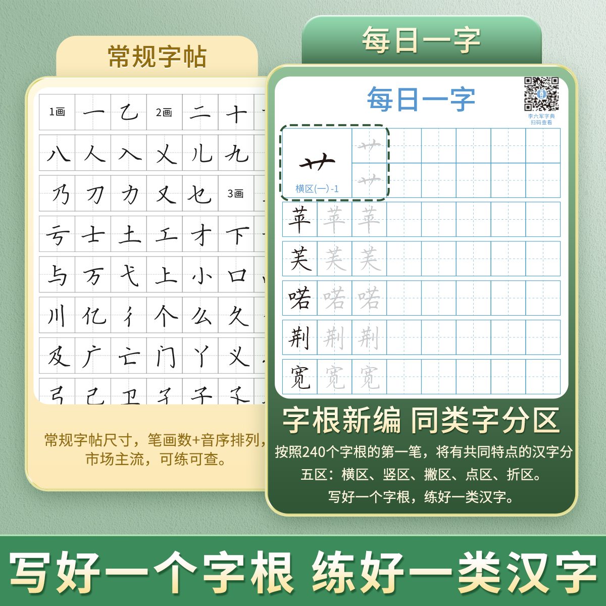 楷书正楷字帖成人练字帖mini便携一天一页小学生初中生高中生字帖笔画笔顺考试体钢笔硬笔书法初学者入门 横区 李六军 每日一字