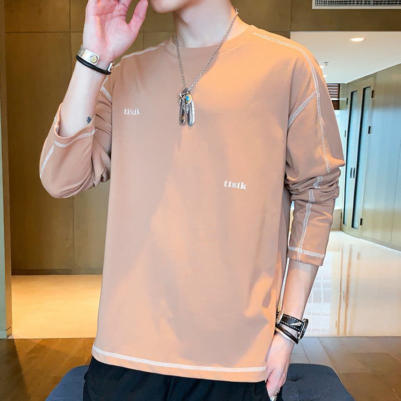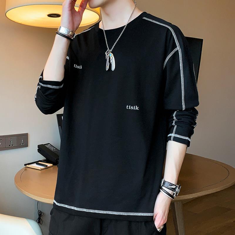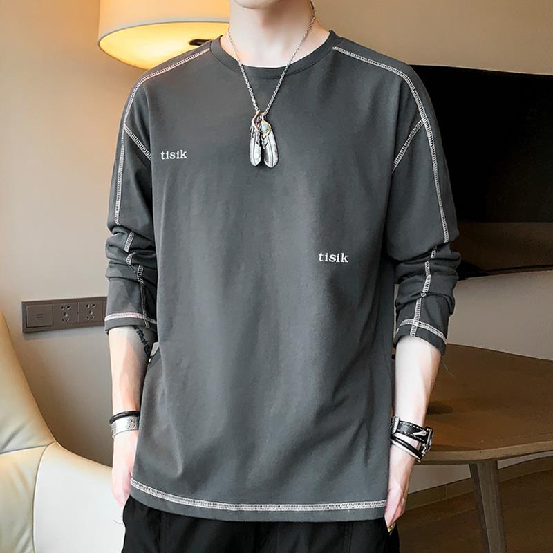 纯长袖 潮牌简约百搭上衣服秋冬宽松休闲圆领卫1015e t恤男2025新款