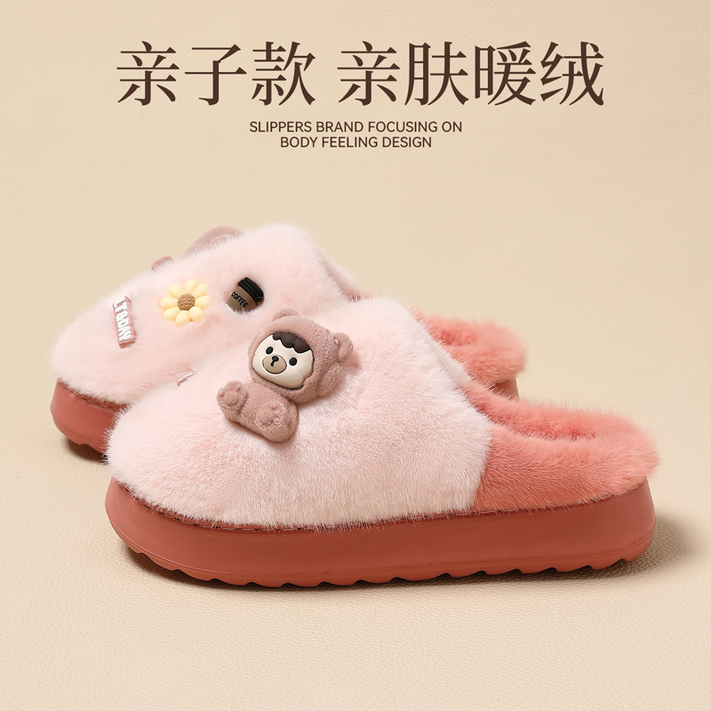 棉拖鞋 室内家居防滑卡通亲子宝宝儿童毛绒保暖棉拖男童 女童秋冬季