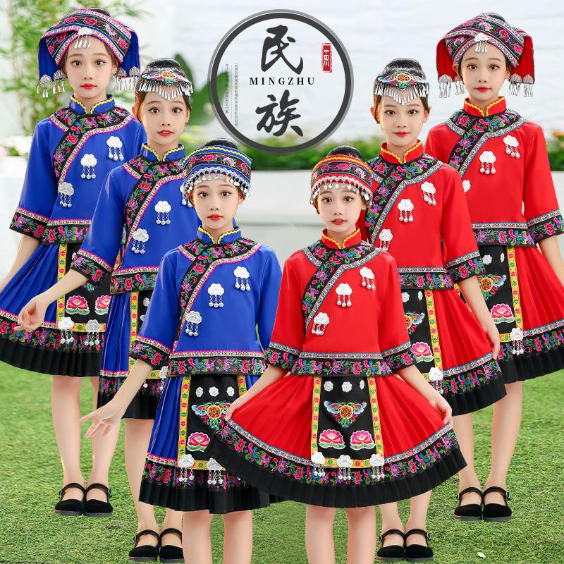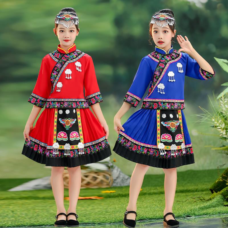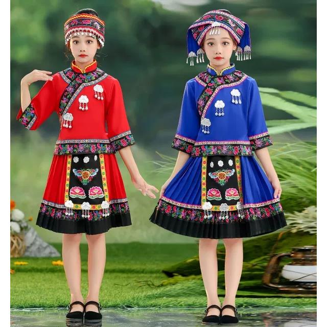 羌族黎族竹竿舞演出民族服饰壮族儿童演出服苗族彝族男女童