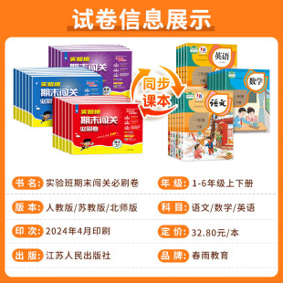 25春实验班期末闯关必刷卷一二三四五六年级上下册语文数学英语同步课堂教材书本