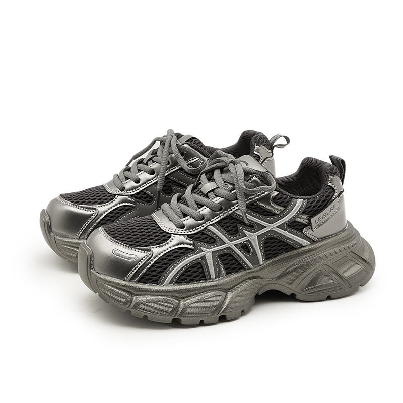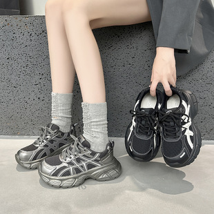 2025新款 银色老爹鞋 秋女鞋 厚底增高休闲鞋 银色运动鞋 斯凯奇熊猫鞋
